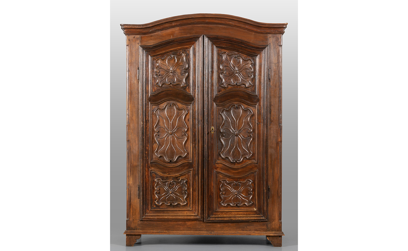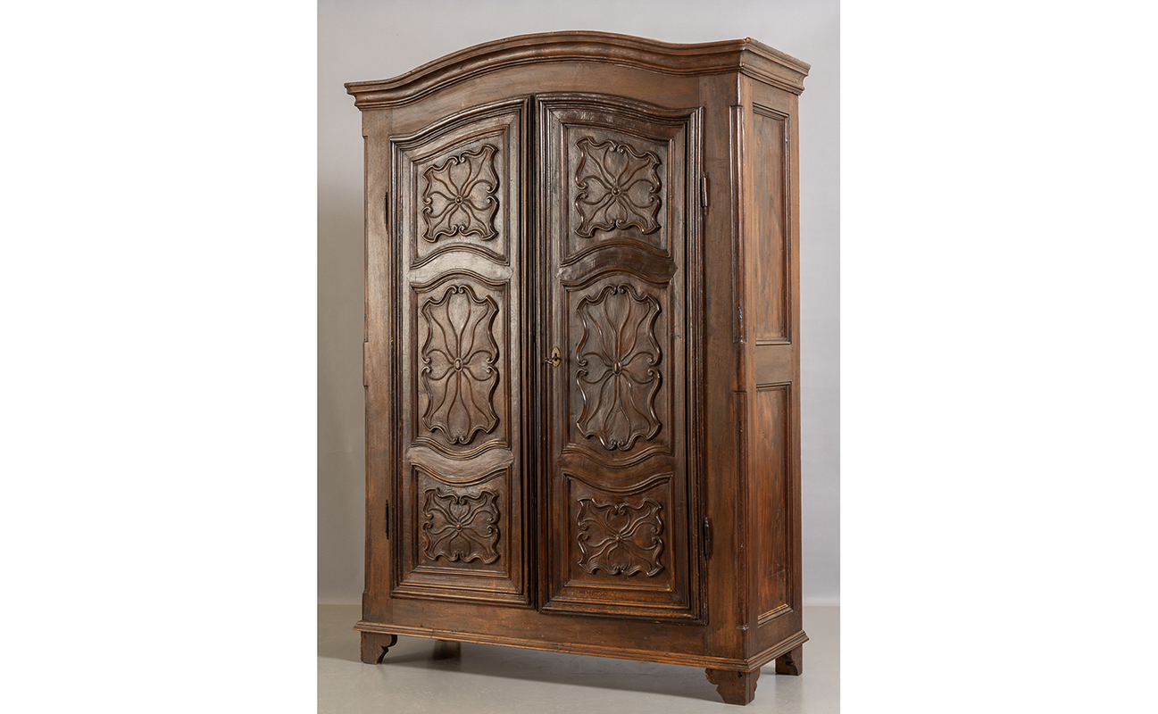 Armadio in stile Luigi XV in noce intagliato a motivi barocchi Piemonte sec.XIX