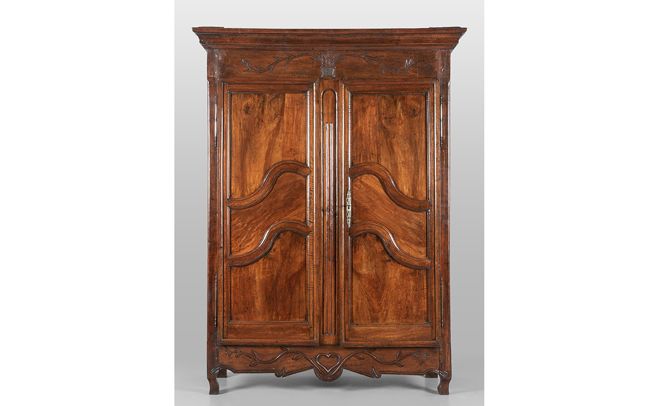 Armadio provenzale in noce intagliato due sportelli Francia sec.XVIII