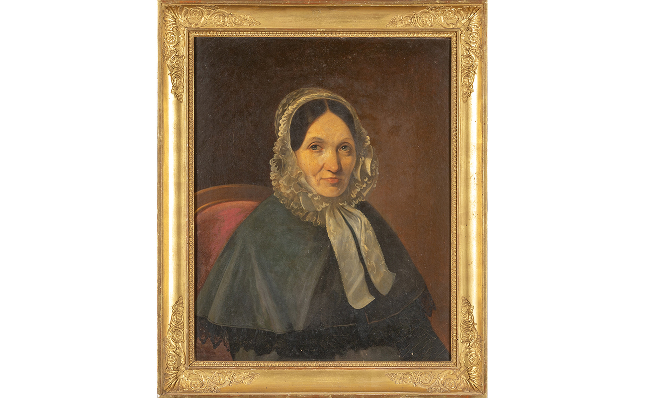 Scuola italiana sec.XIX 'Ritratto di antenata' olio cornice Carlo X in legno intagliato e dorato