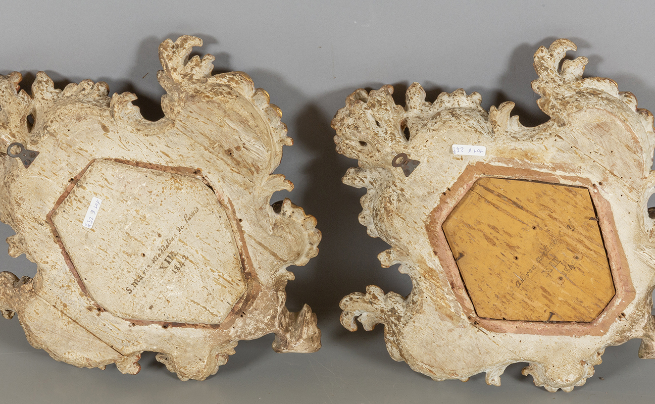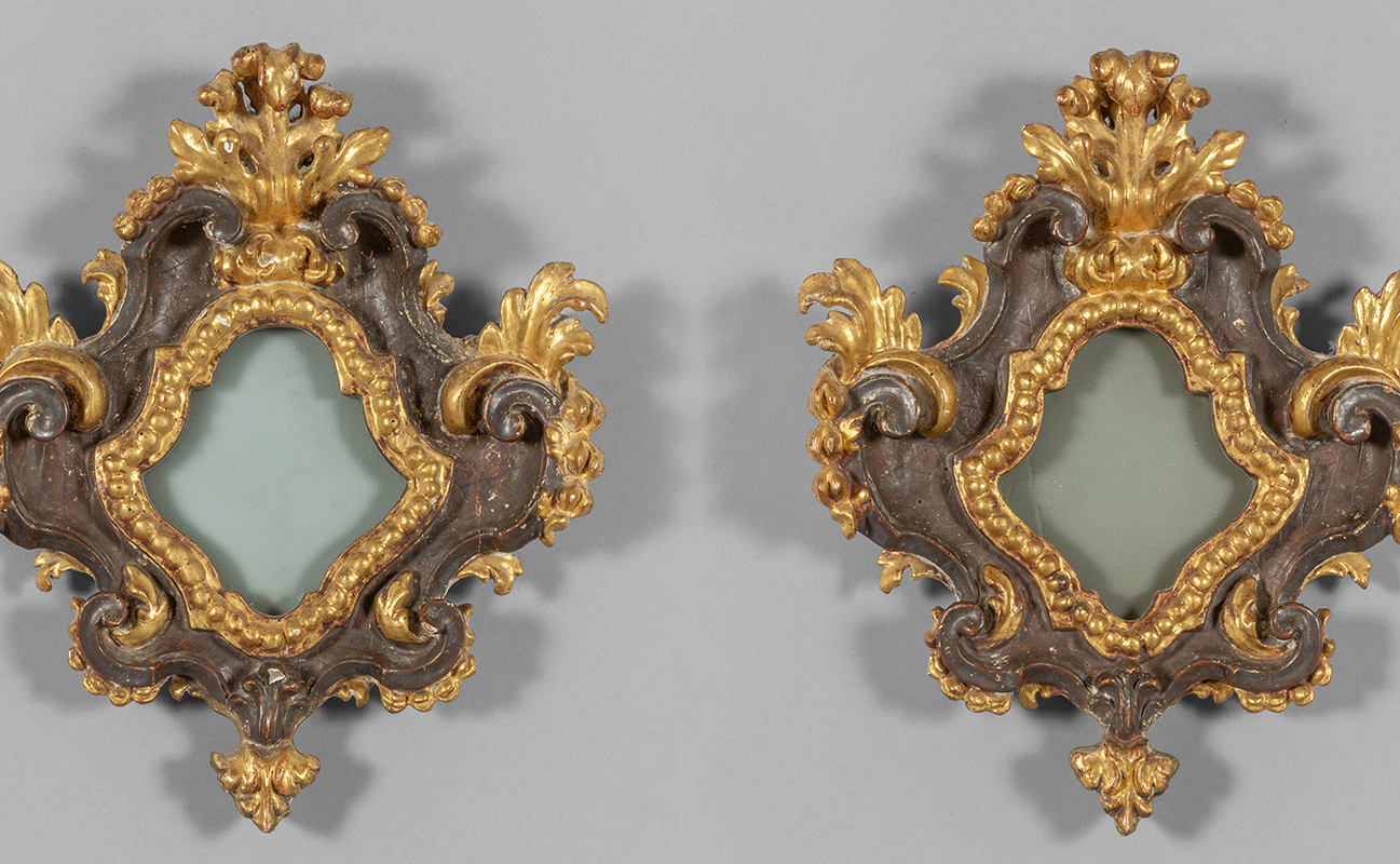 Coppia di specchierine Luigi XV in legno tagliato e dorato sec.XVIII