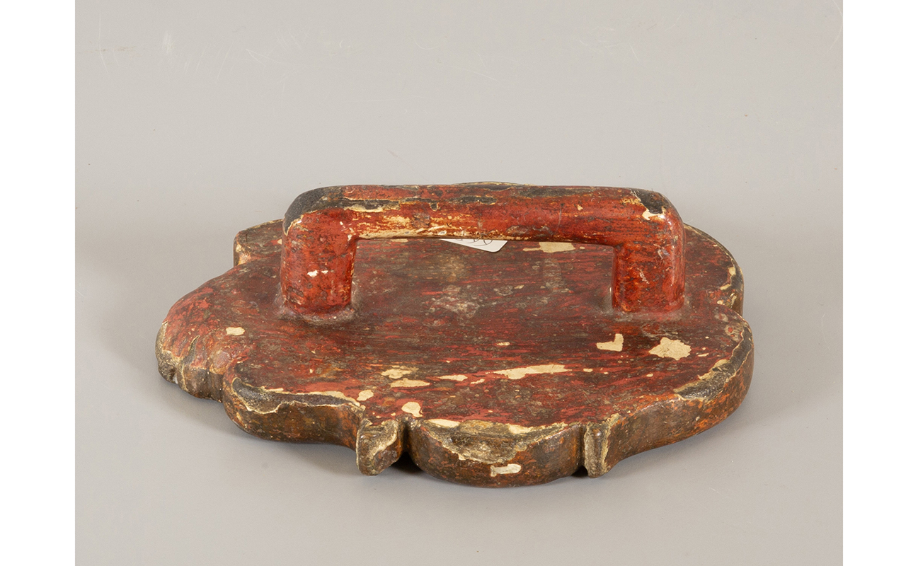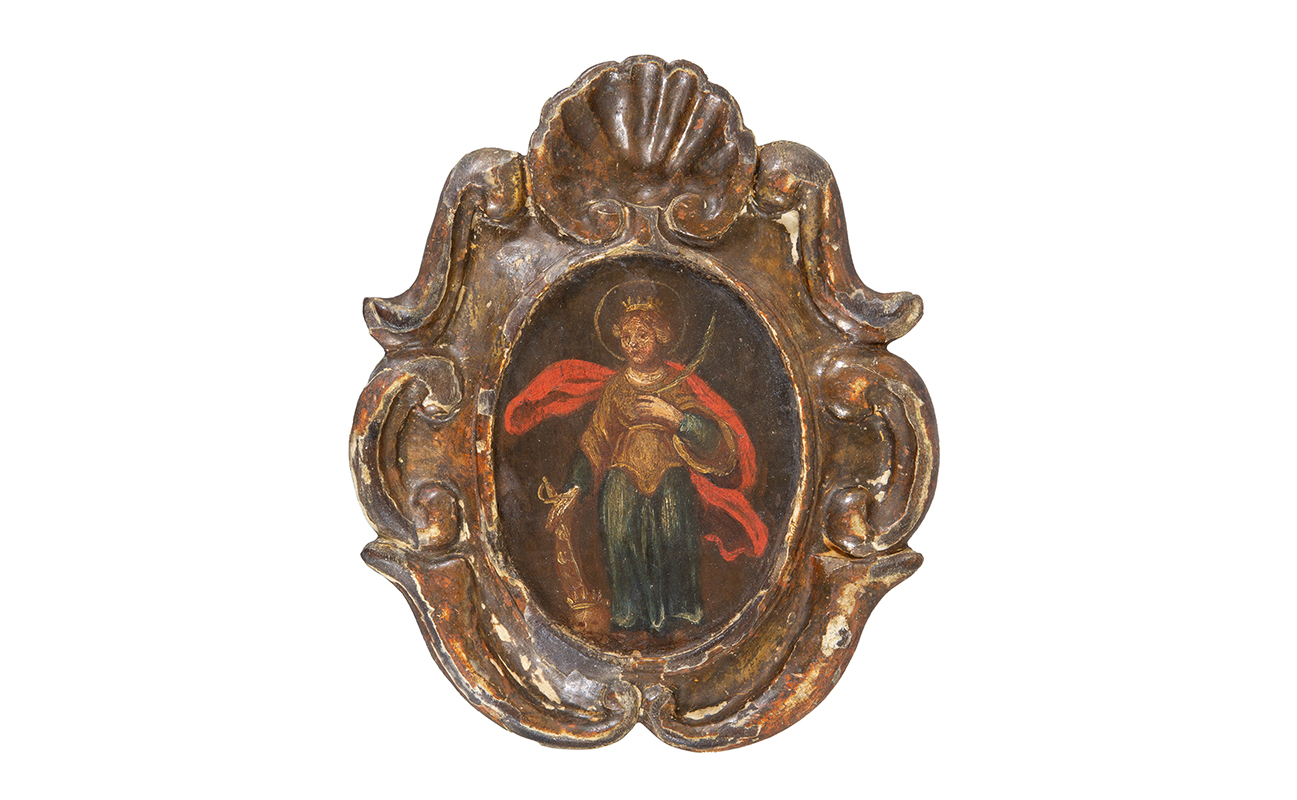 Pace in legno intagliato e meccato con al centro figura di Santo sec.XVII