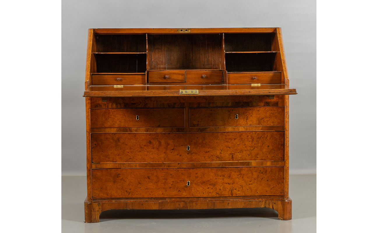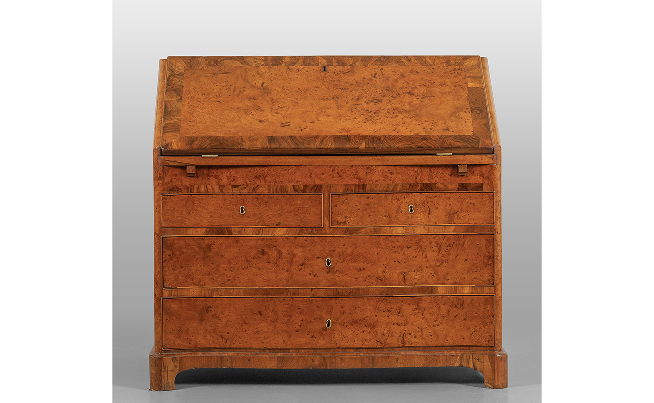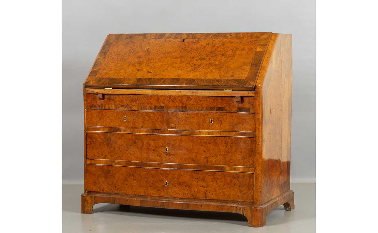 Mobile a ribalta Luigi XIV movimentato sul fronte e lastronato in radica di tuja Toscana sec.XVIII