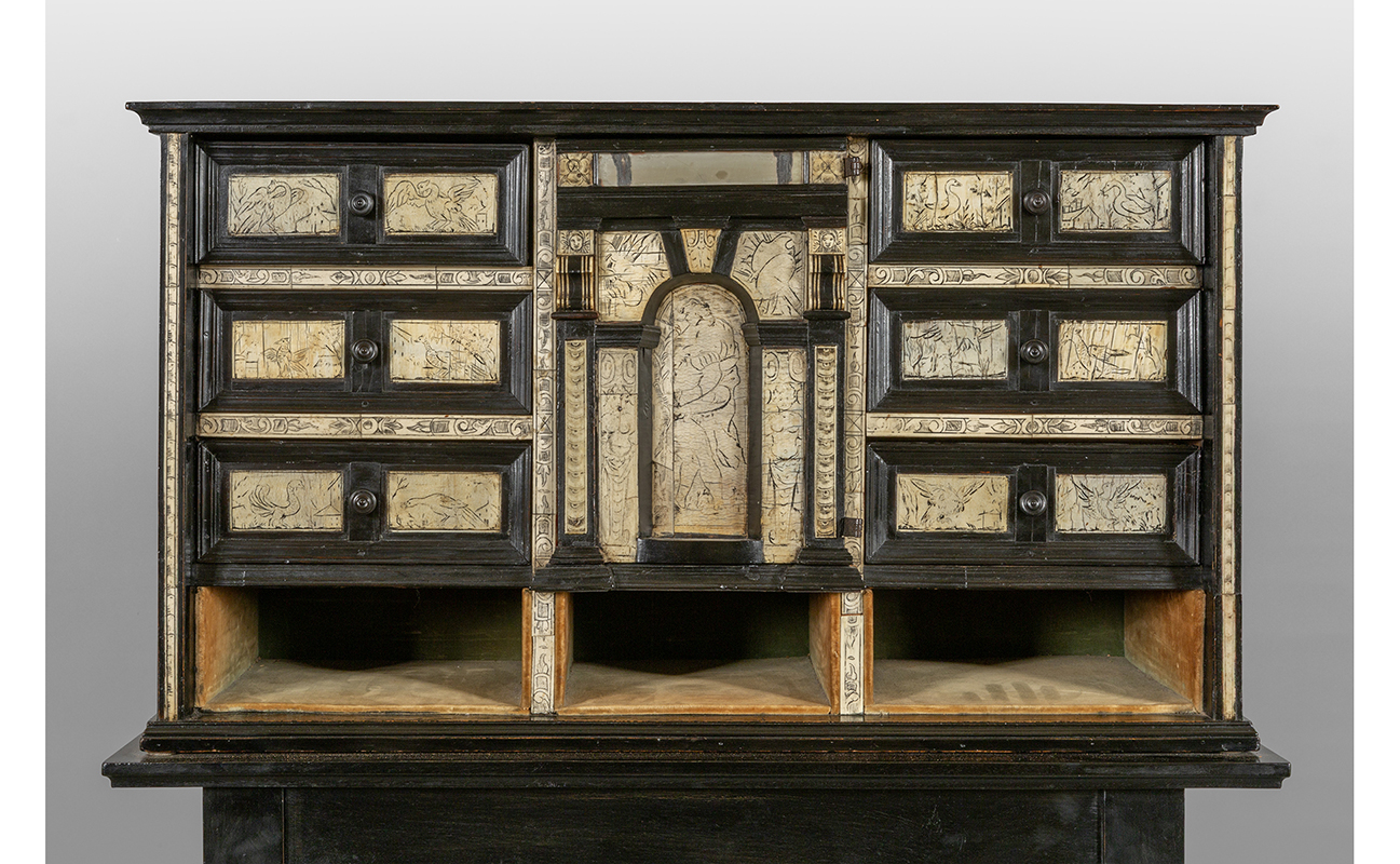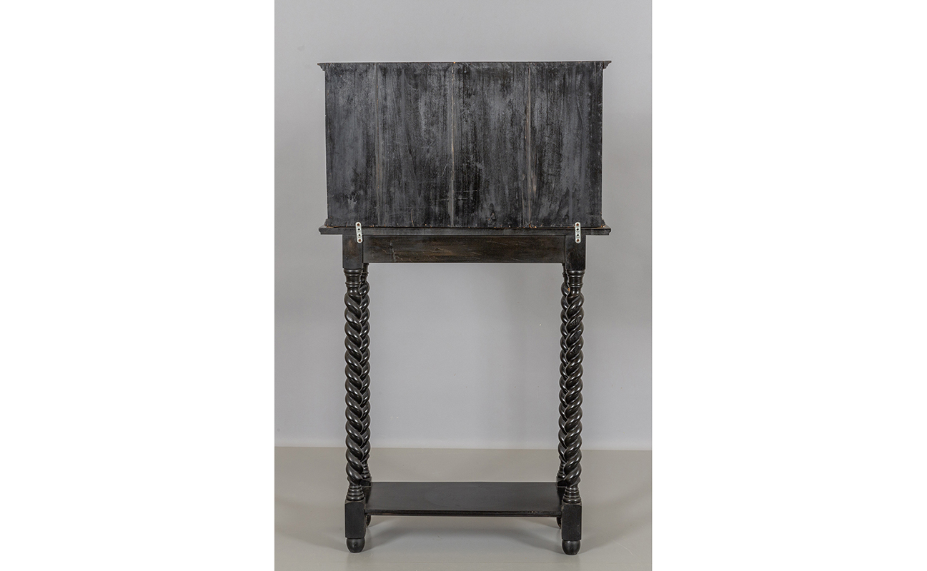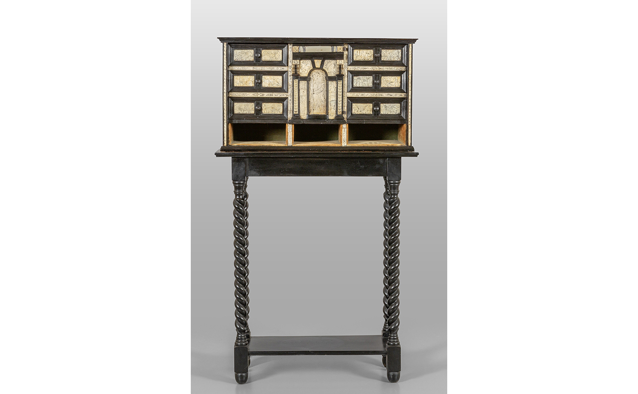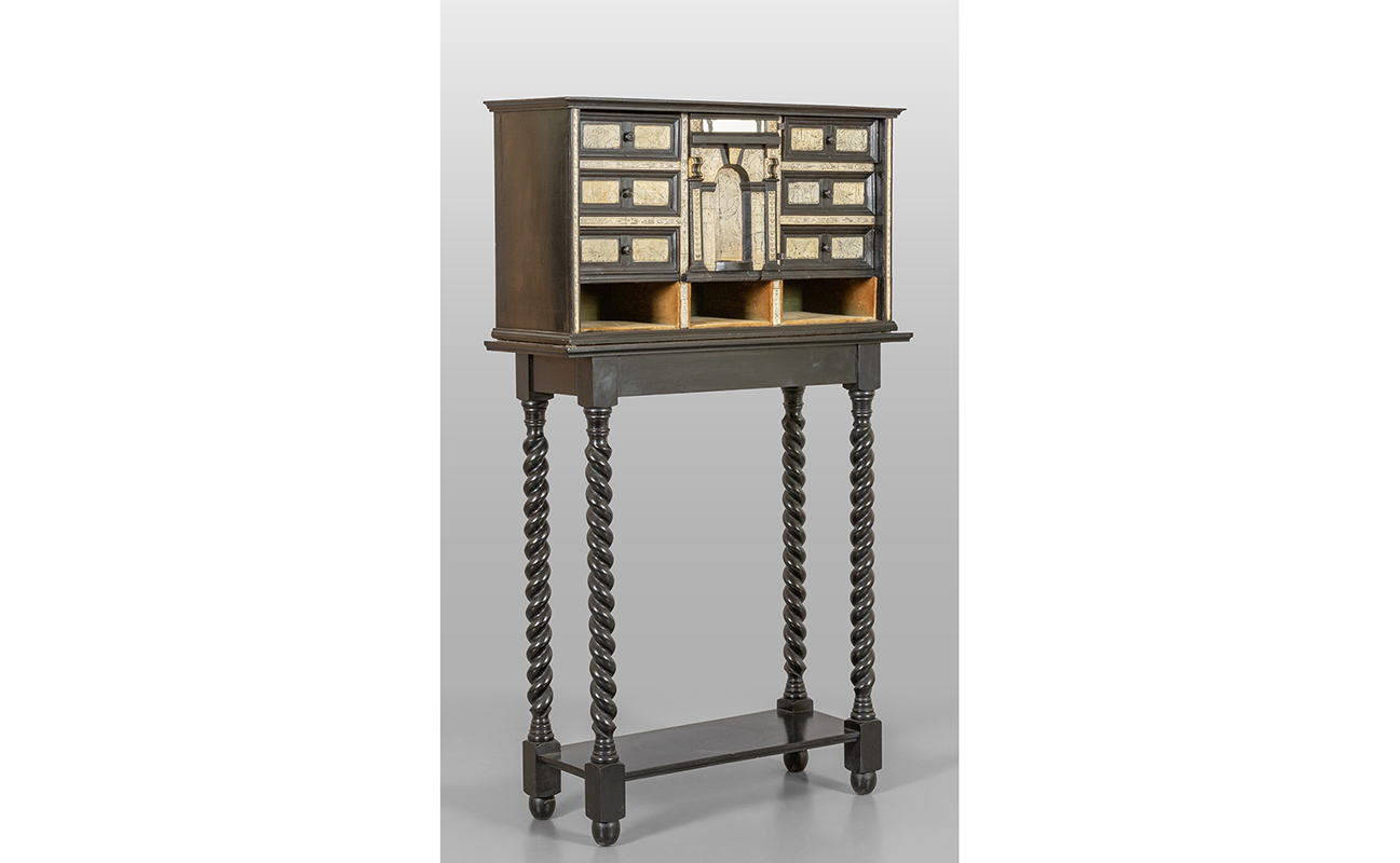 Monetiere in legno ebanizzato e avorio Lombardia sec.XVII/XVIII poggiante su base in stile a rocchetto