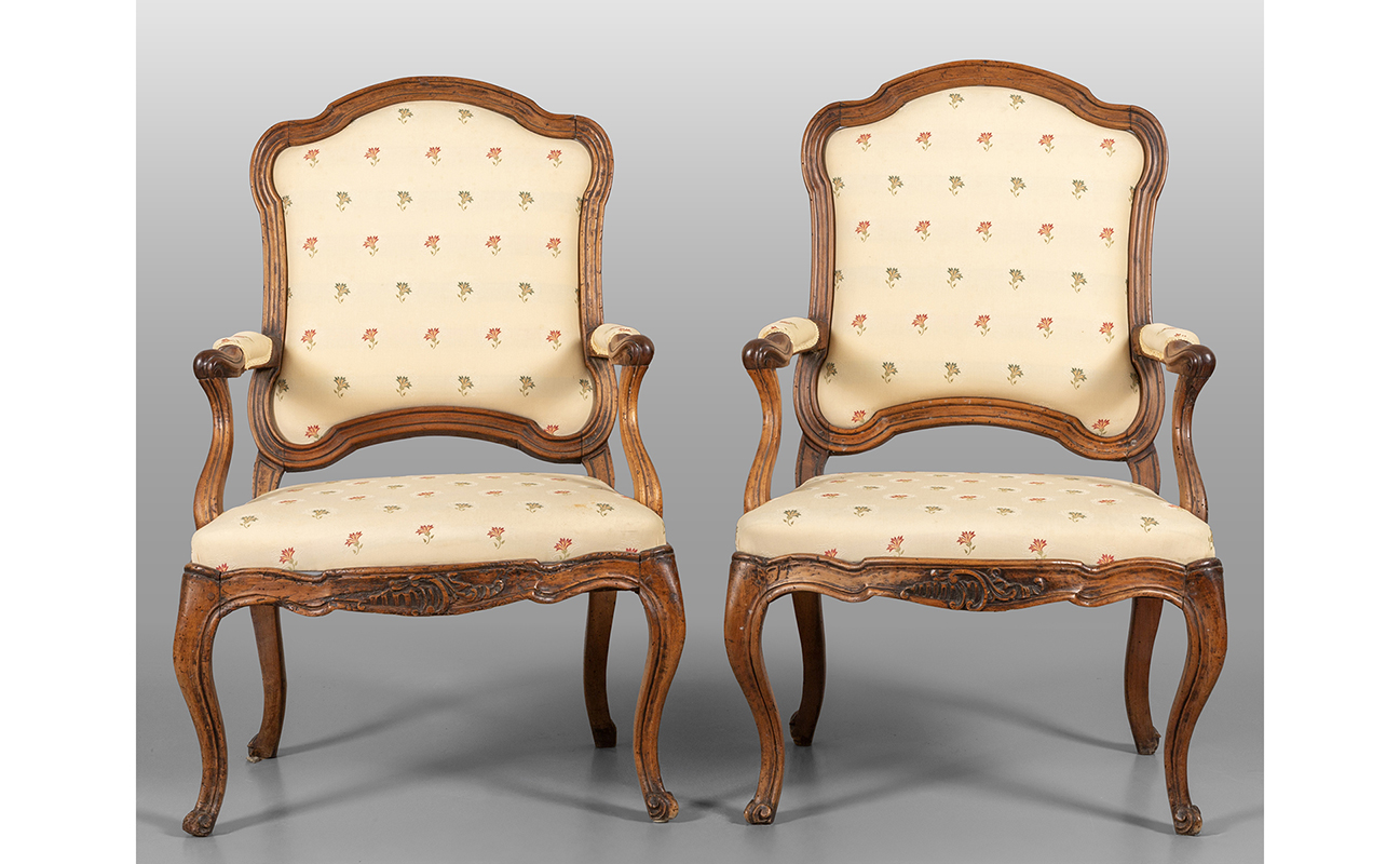 Precedente Lotto 0856 Successivo Aste Boetto - Via Mura dello Zerbino 10R, 16122 Genova ASTA DI ANTIQUARIATO ASTA DI ANTIQUARIATO mercoledì 1 ottobre 2025 ore 15:00 (UTC +01:00) MOBILE Coppia di poltrone Luigi XV in noce Piemonte sec.XVIII