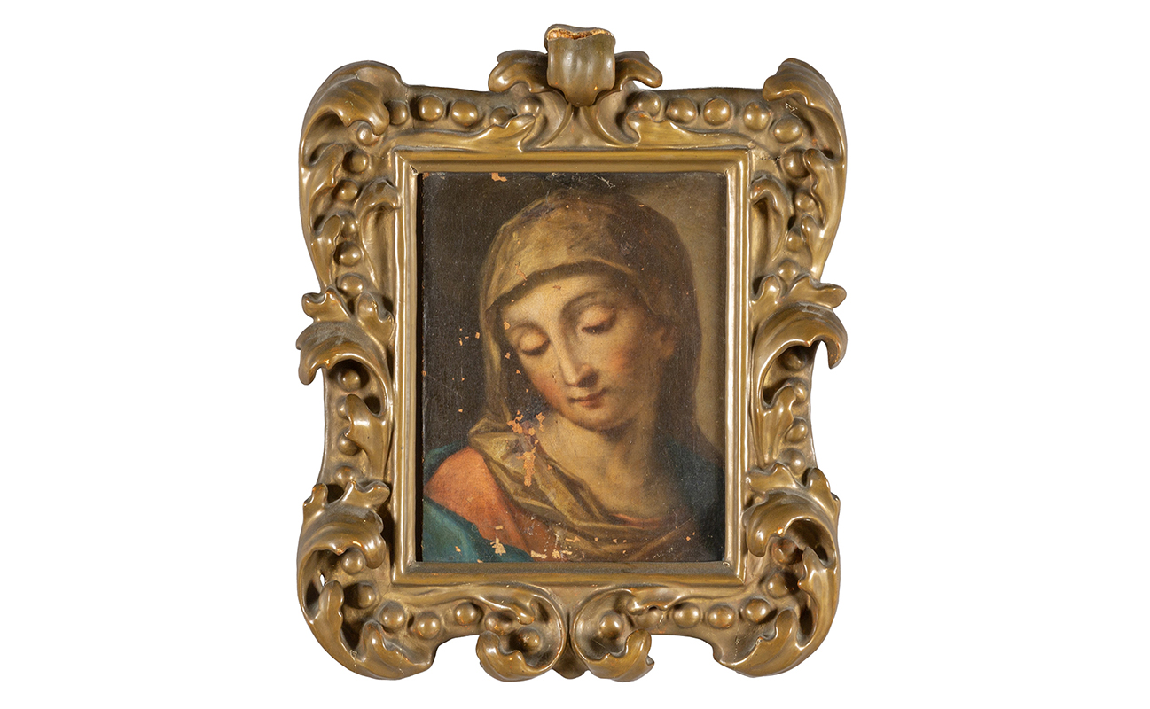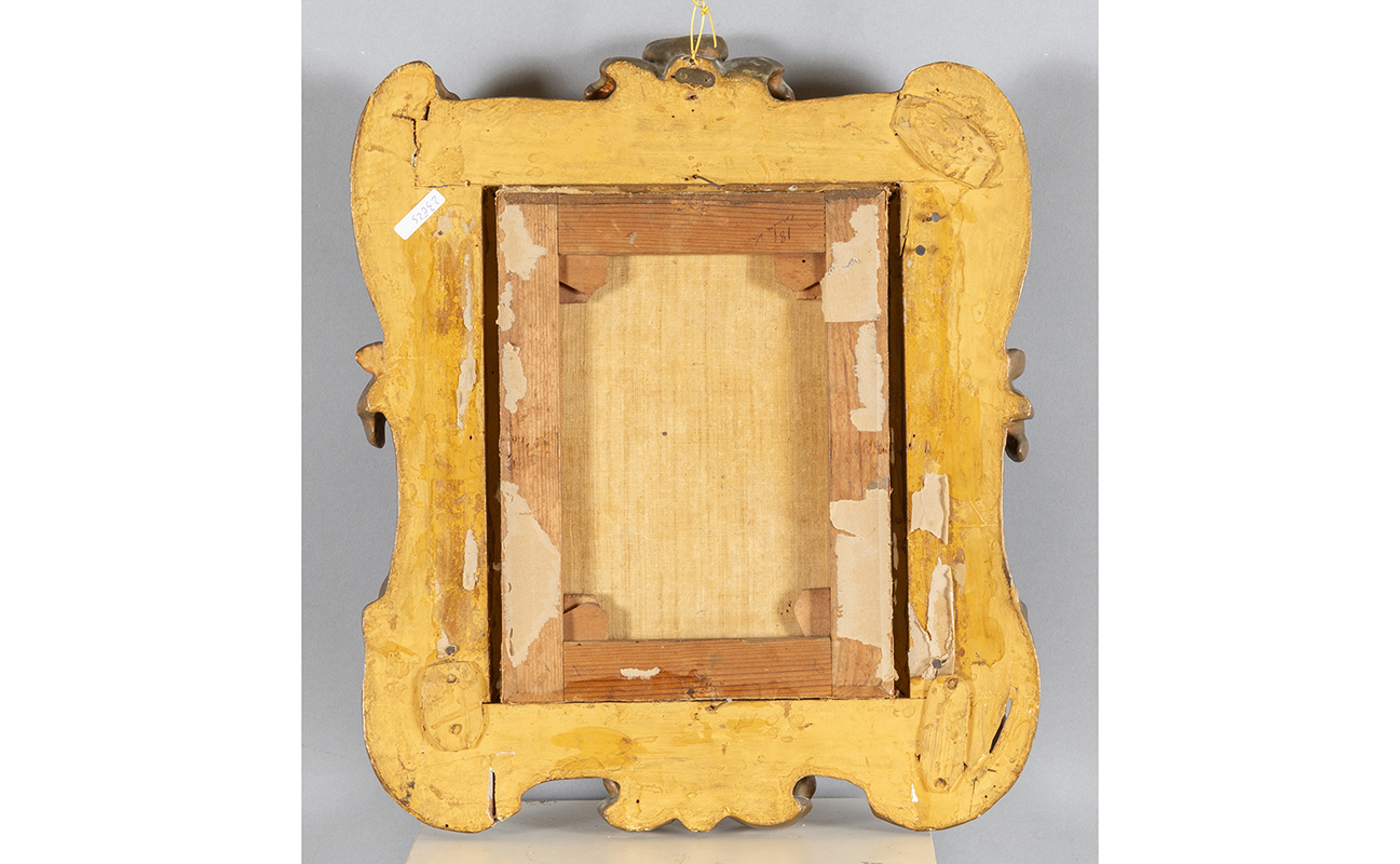 Scuola emiliana sec.XVIII 'Madonna' olio cornice in legno intagliato a volute