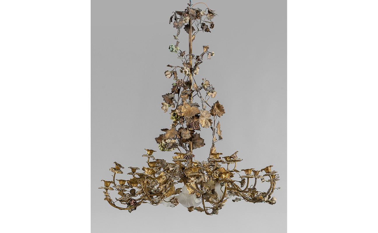 Precedente Lotto 0903 Successivo Aste Boetto - Via Mura dello Zerbino 10R, 16122 Genova ASTA DI ANTIQUARIATO ASTA DI ANTIQUARIATO giovedì 2 ottobre 2025 ore 15:00 (UTC +01:00) OGGETTISTICA Lampadario in bronzo dorato a tralci di vite sec.XIXcm. 130x100