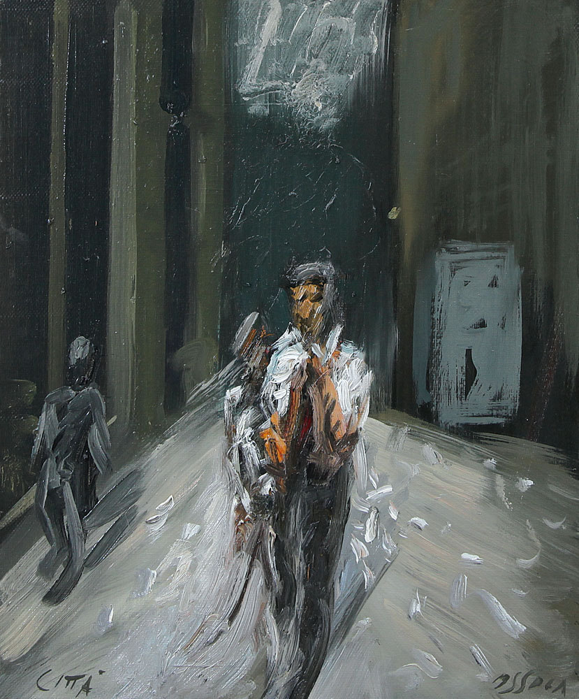 OSSOLA GIANCARLO Milano 1935Città, 2001olio su tela cm. 60x50x2, firma in...