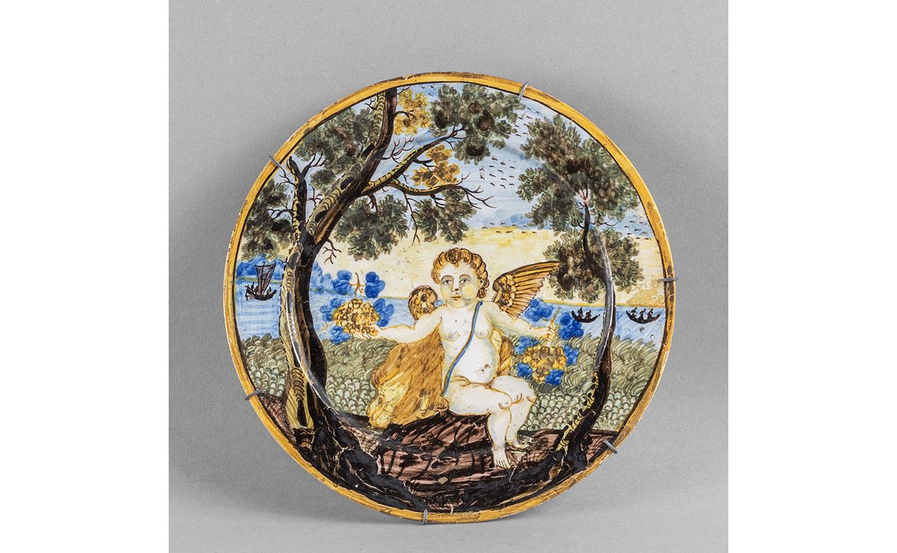 Piattino in ceramica decorato con angioletto manifattura di Castelli sec.XVIII
