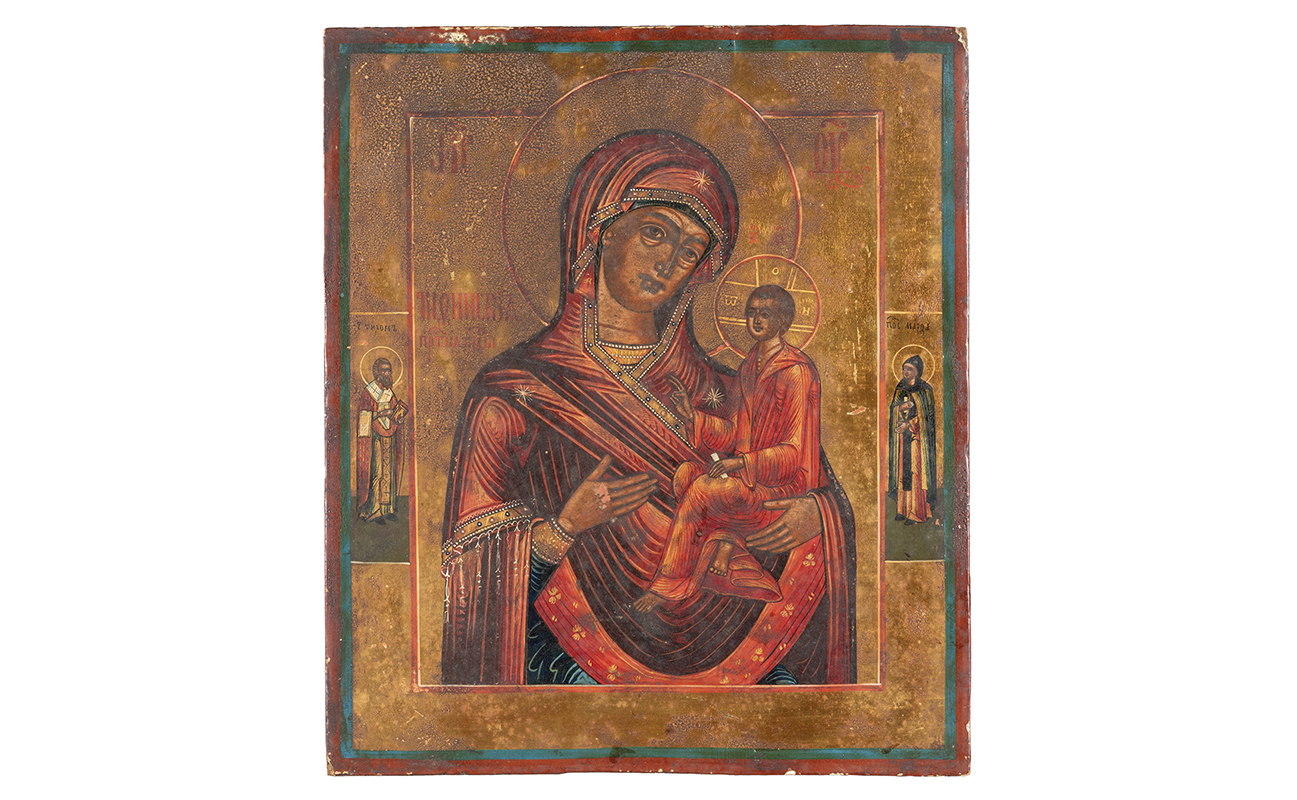 Madonna Odighitria icona tempera su tavola a fondo oro Russia sec.XIX