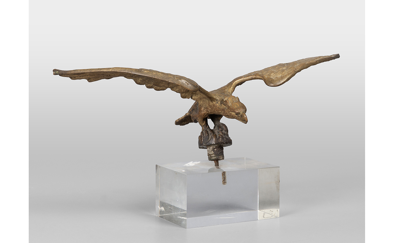 Aquila scultura in bronzo poggiante su base in marmo sec.XIX