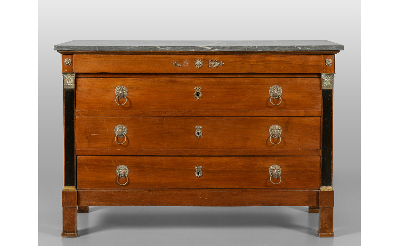 Comò Impero a tre cassetti più uno con piano in marmo sec.XIX