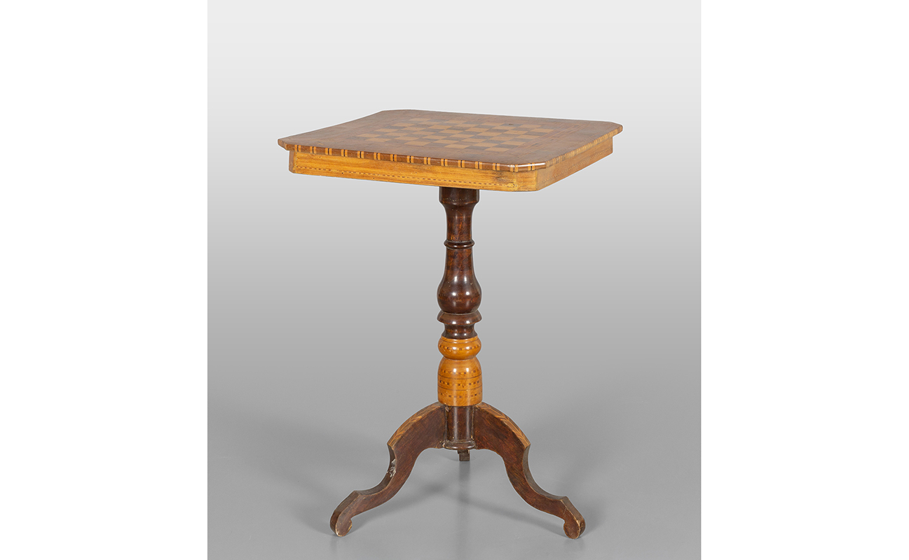 Tavolino da centro intarsiato sul piano con il motivo del gioco della dama Rolo sec.XIX