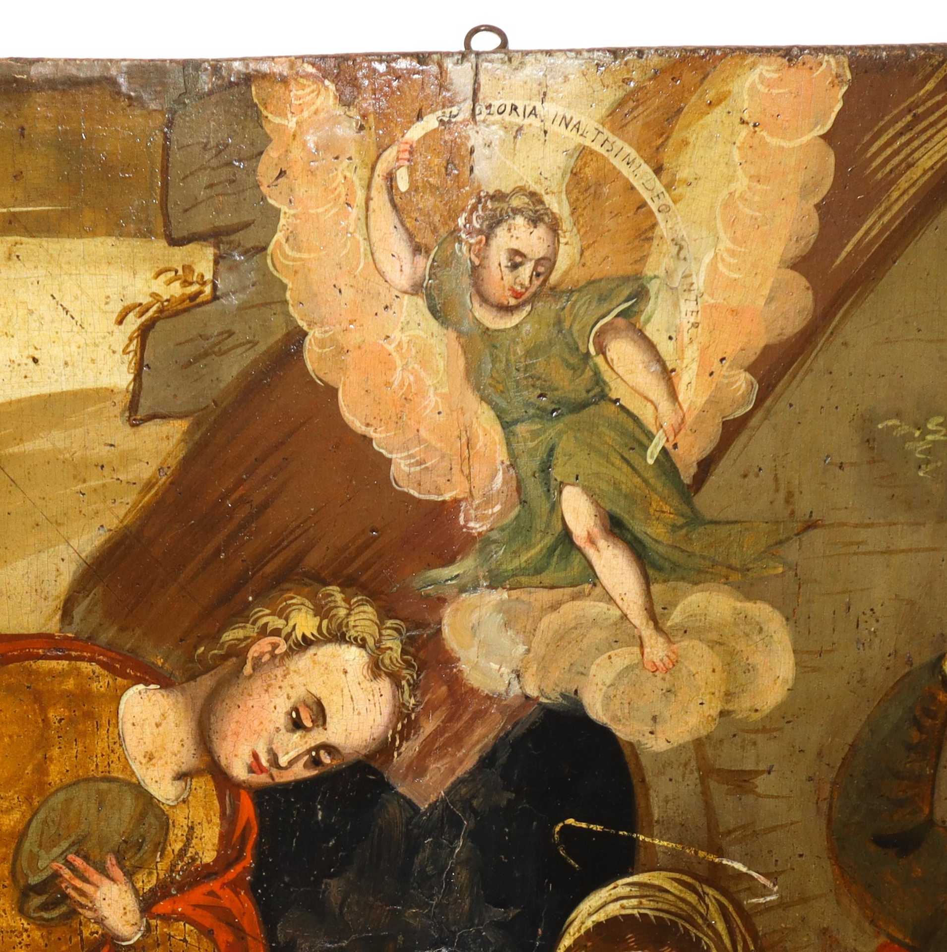 Natività con adorazione dei pastori e angelo in testa al centro , 17° secolo h 55,5X47,5 tempere grasse su legno Pittura veneto-cretese