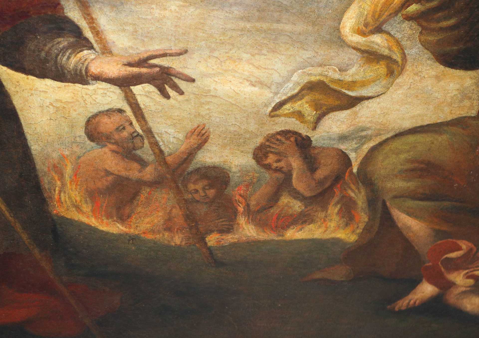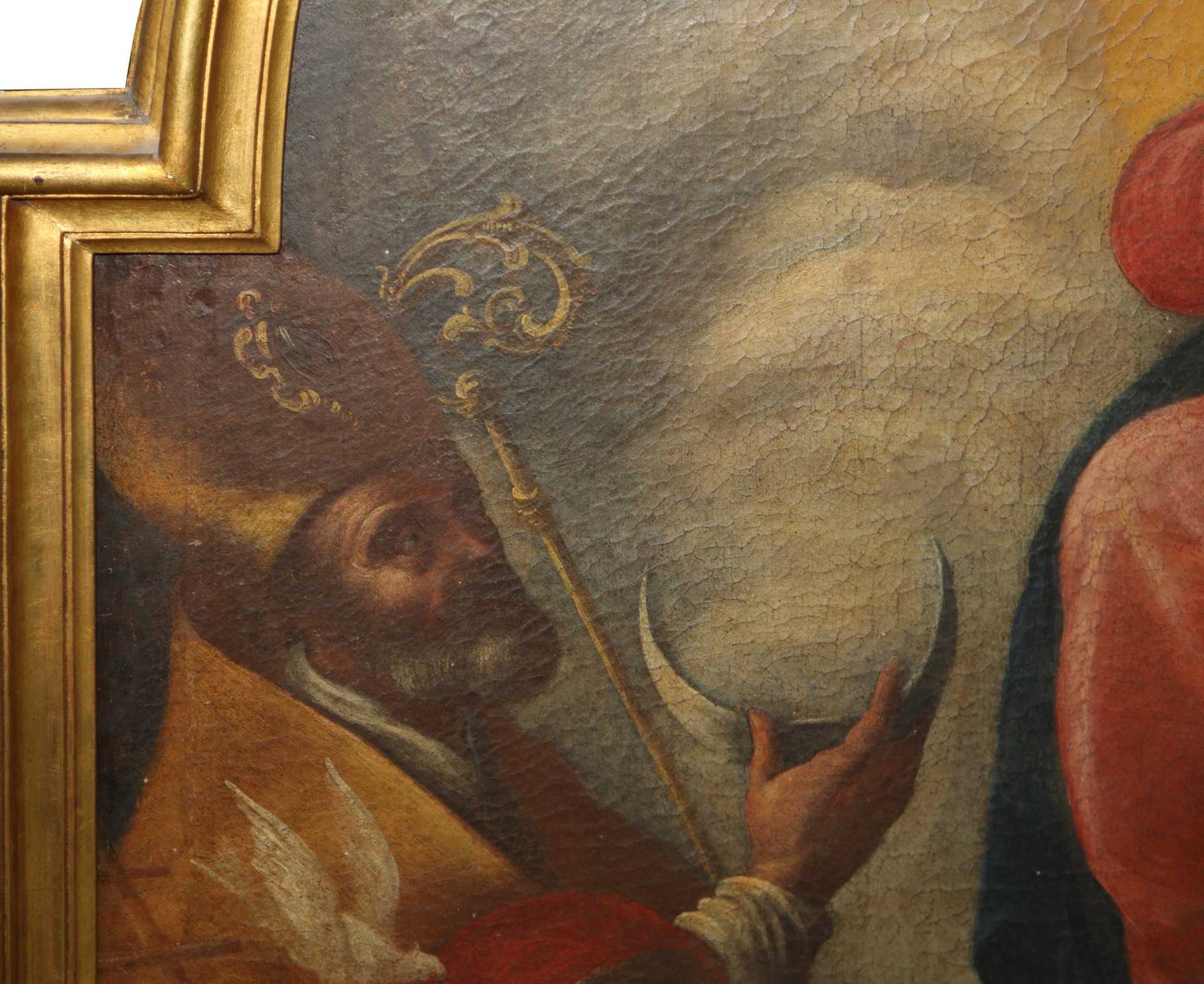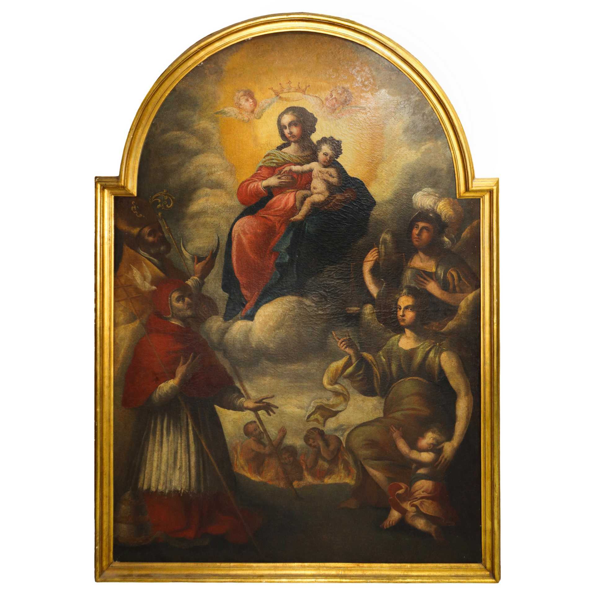 Lotto 10 | Madonna con Bambino e Santi, grande pala con cornice centinata, fine 17° secolo