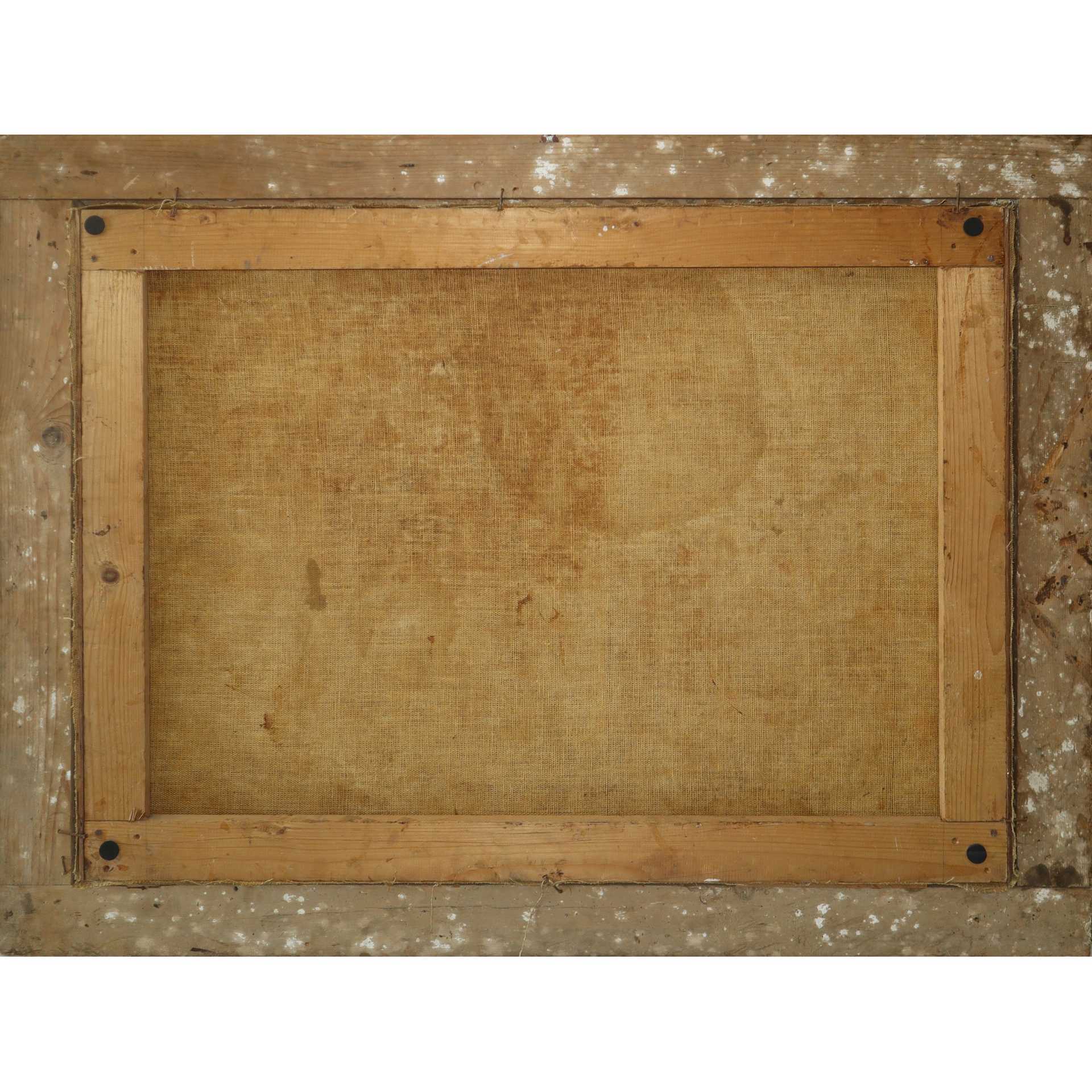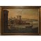 Paesaggio portuale con fortificazione e torre, 17° secolo h cm 75X101 in cornice h cm 94X120 olio su tela