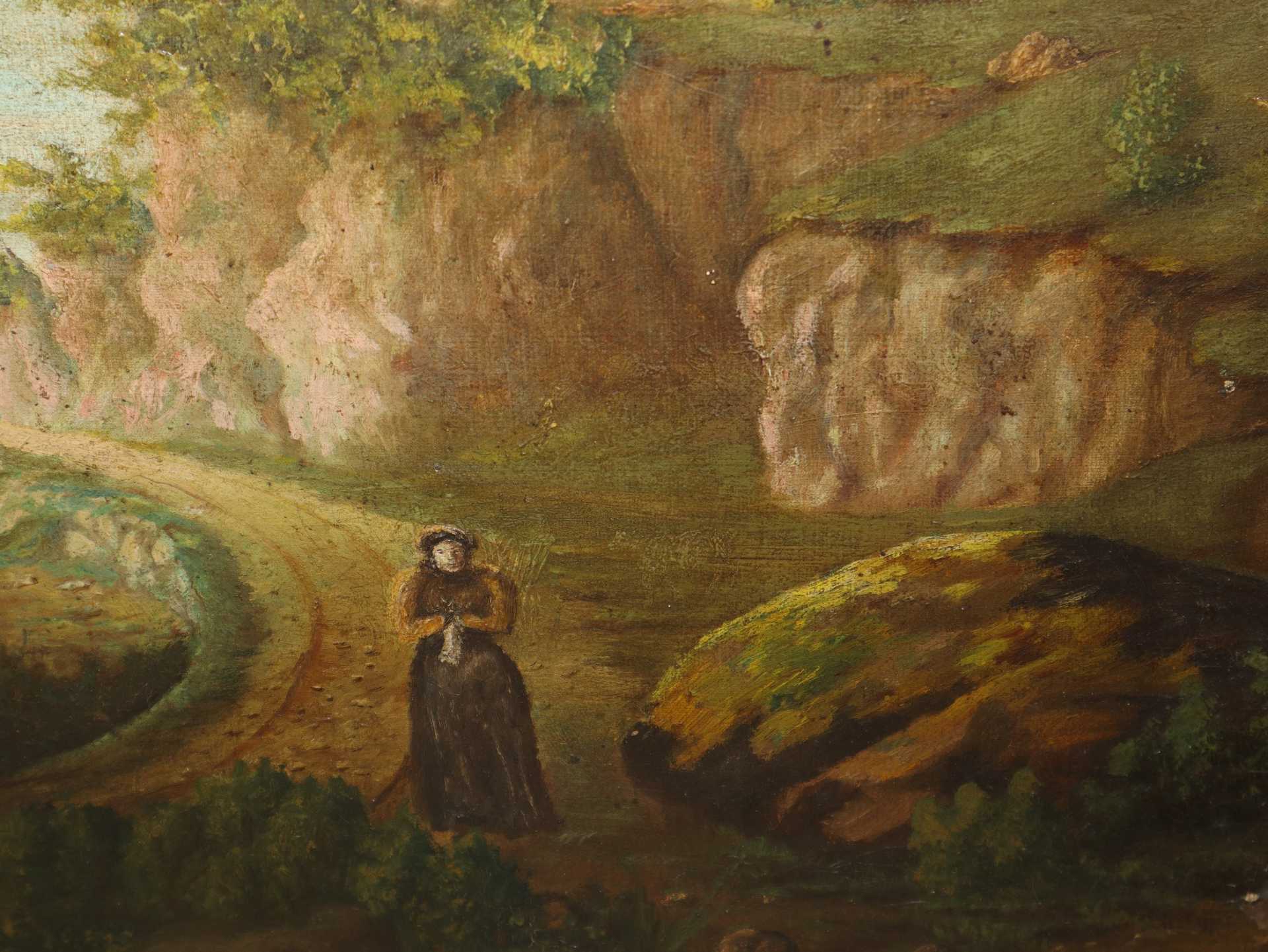 Paesaggio con castello, fine 19° secolo h cm 46X65 in cornice h cm 62X81 Firmato in basso a destra P.Baron, pittore belga/francese