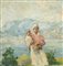 Leonardo Ruggero - Donne con bambini in braccio h cm 39X54 in cornice h cm 60X75 olio su tela Firmato in basso a destra. Sul retro: opera garantita su autentica di Leonardo Ruggero, Antonio Russo Galleria Russo Piazza di Spagna 11 Roma.