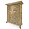 Armadio a due ante laccato e dipinto con quattro formelle per anta dipinte con scene di figure femminili, cappello dentellato di forma aggettante e piedi felini, 19° secolo Marches