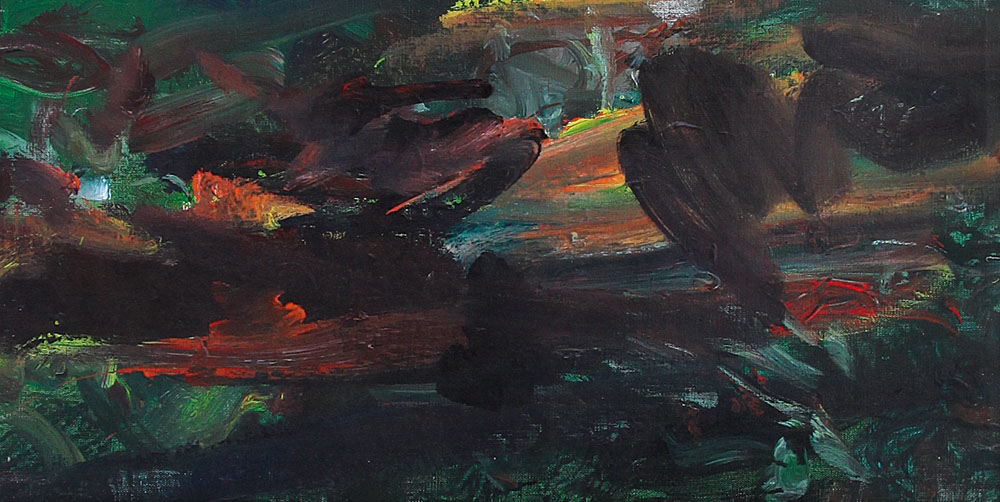 olio su tela cm. 34,5x68,5; firma, titolo, anno e dedica ad personam al retro, dichiarazione d'autenticità dell'artista su foto.