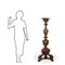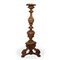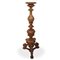 Grande candeliere in legno di noce fusto a grandi rocchetti su base triangolare, 17° secolo