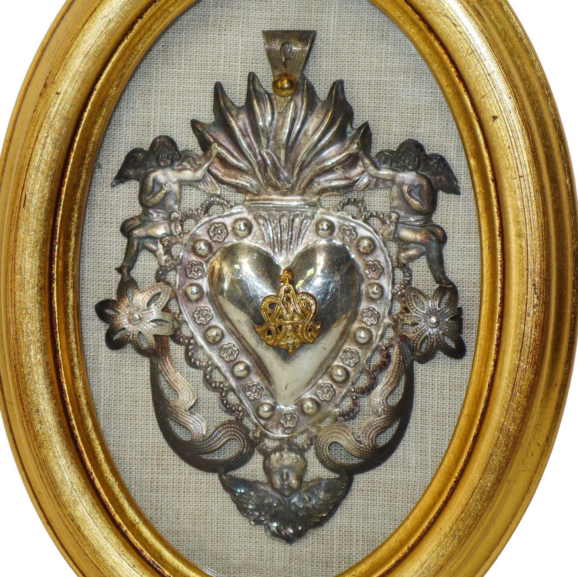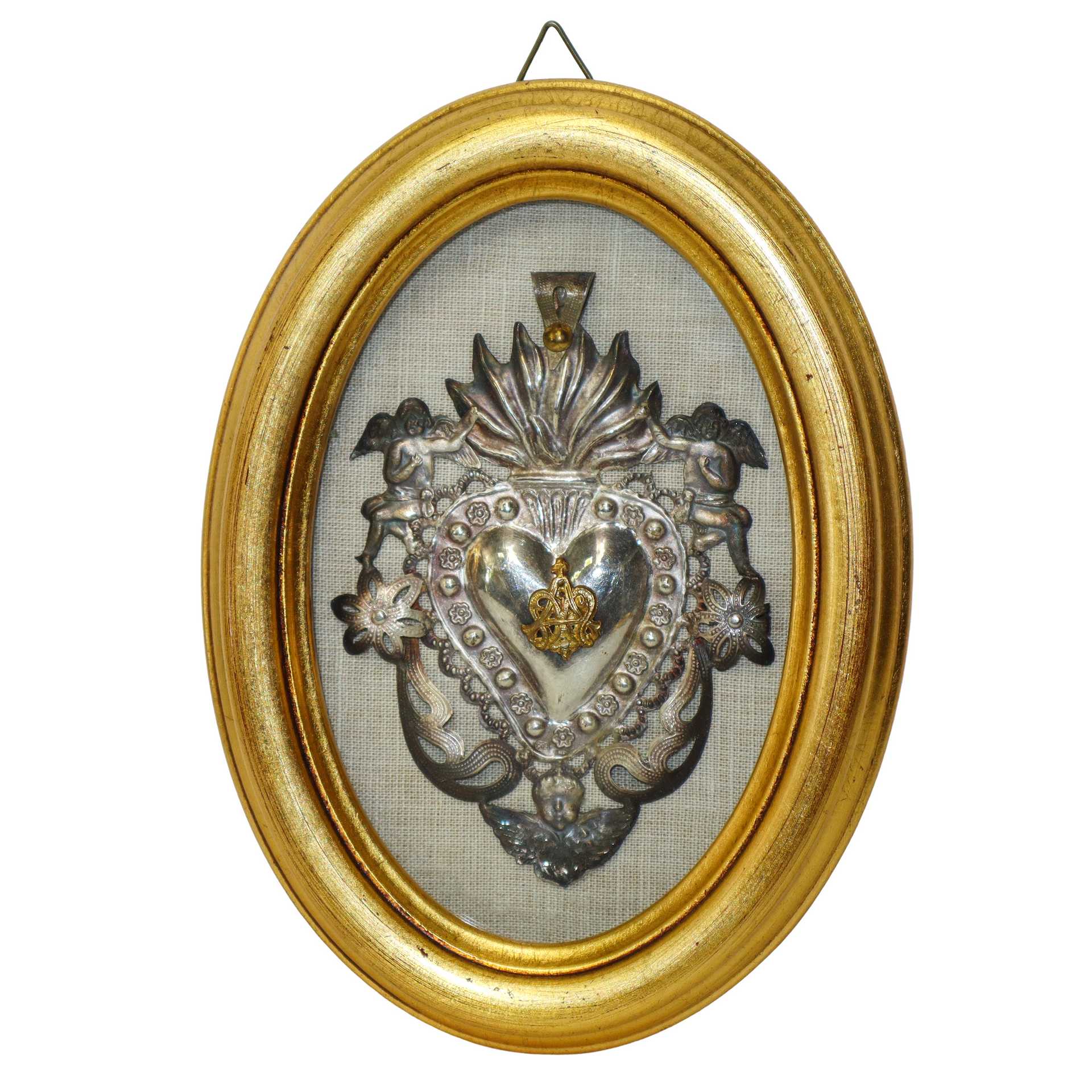 Coppia Ex Voto in argento in cornice ovale dorata h cm 11,5X8,5 in cornice h cm 19X14 piccolo h cm 9,5X6,5 in cornic h cm 15X12,5