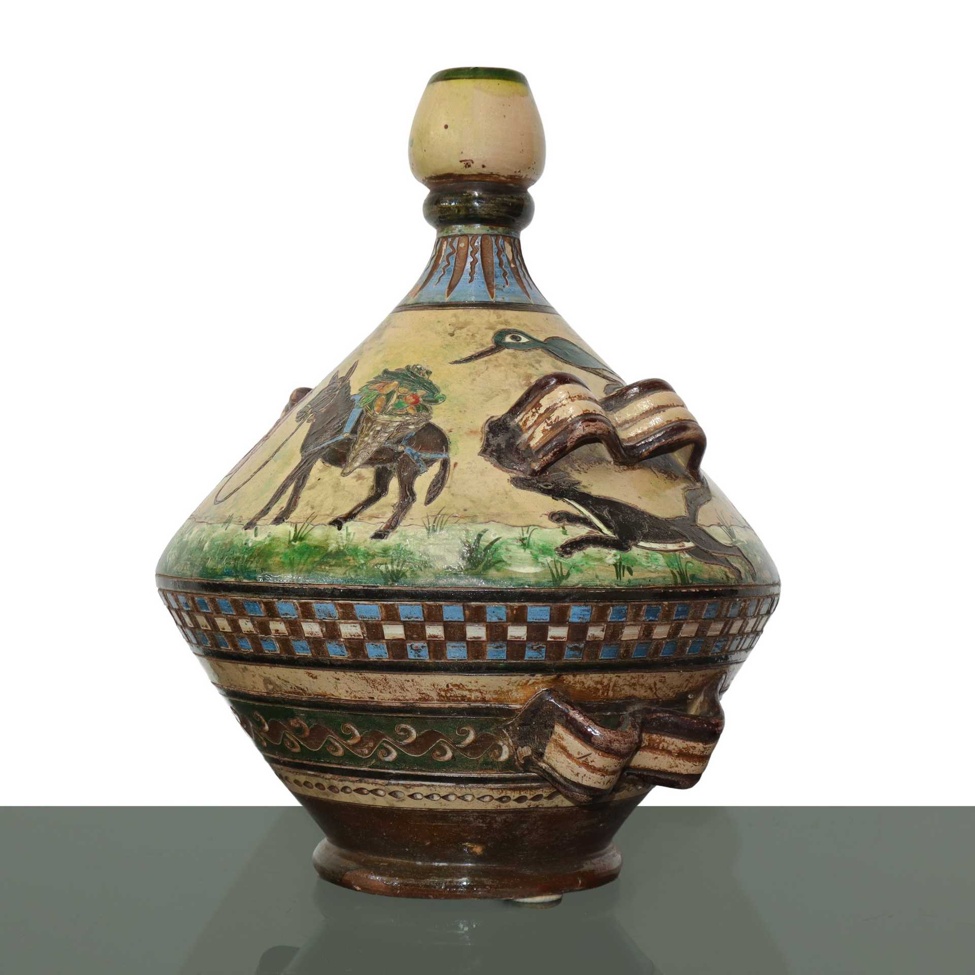 Vaso in Ceramica di Montopoli Val D'Arno policroma con personaggi e animali