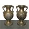 Coppia di vasi biansati in metallo con decori e iscrizioni a rilievo sul fronte e sul retro