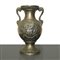 Coppia di vasi biansati in metallo con decori e iscrizioni a rilievo sul fronte e sul retro h cm 28,5 (cadauno)