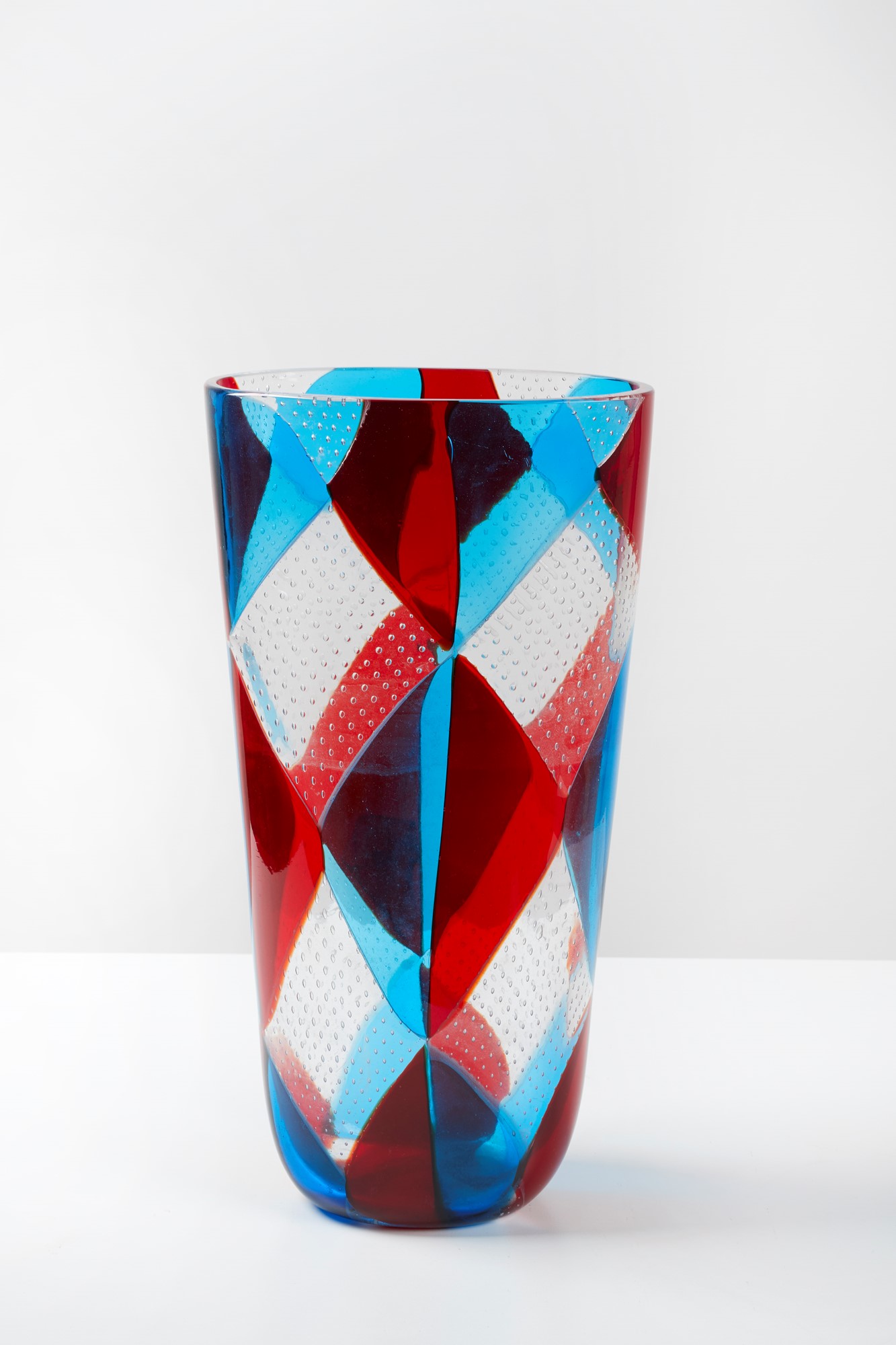 ERCOLE BAROVIER Vaso in vetro soffiato a tessere con bolle d'aria contollate. 1961-63. Cm 38,5x19,5x13. Prod. Barovier & Toso, Murano, Italia.