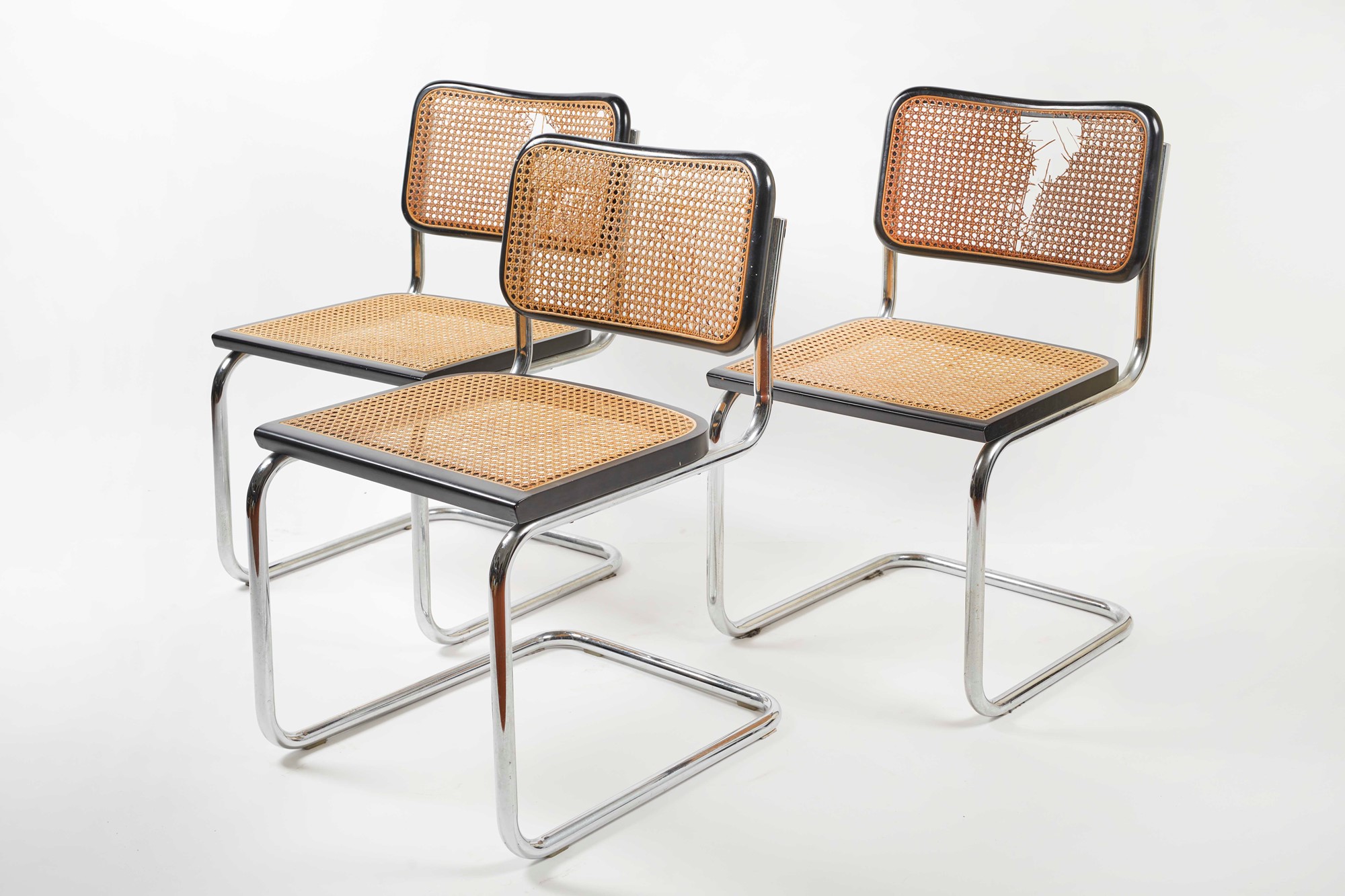 MARCEL BREUER (Pécs 1902 - New York 1981) Lotto composto da tre sedie modello "Cesca", in noce, acciaio e paglia. Anni '60. Cm 81x45x50. Prod. Gavina, Italia. (difetti)