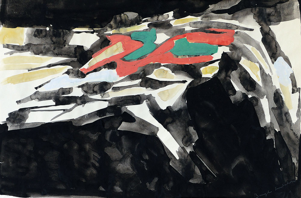 tecnica mista su carta cm. 49,5x63,7; firma in basso a destra, dichiarazione d'autenticità e archivio a cura della signora Michelle Lindstrom presidente del Comitè Bengt Lindstrom su foto.