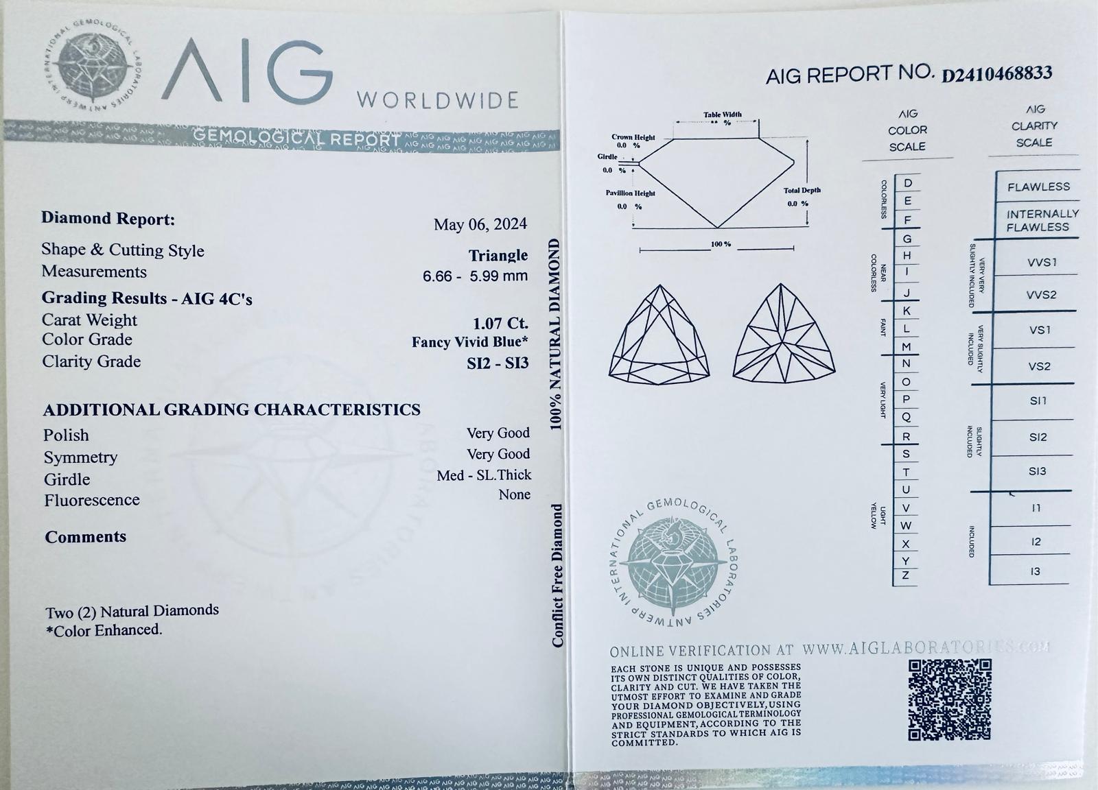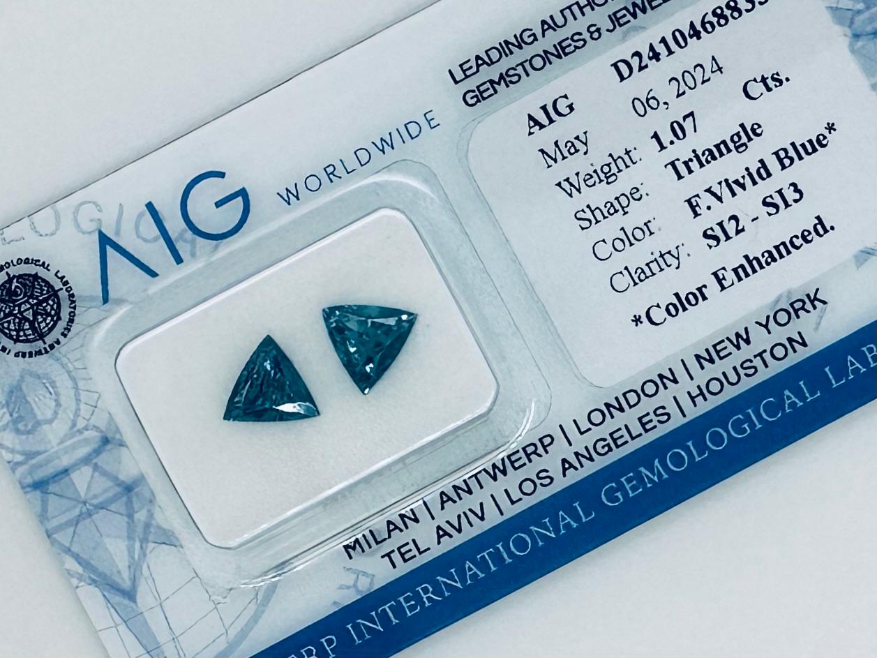 Lotto 12 | 2 DIAMANTI NATURAL POLISHED 1,07 FANCY BLU INTENSO* -SI1-2 - AIG - C31210-6