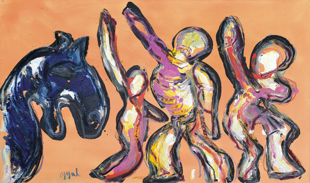 acrilici su carta cm. 88x148, firma in basso a destra, opera registrata presso l'Archivio Karel Appel come da certificato della Karel Appel Foundation allegato.