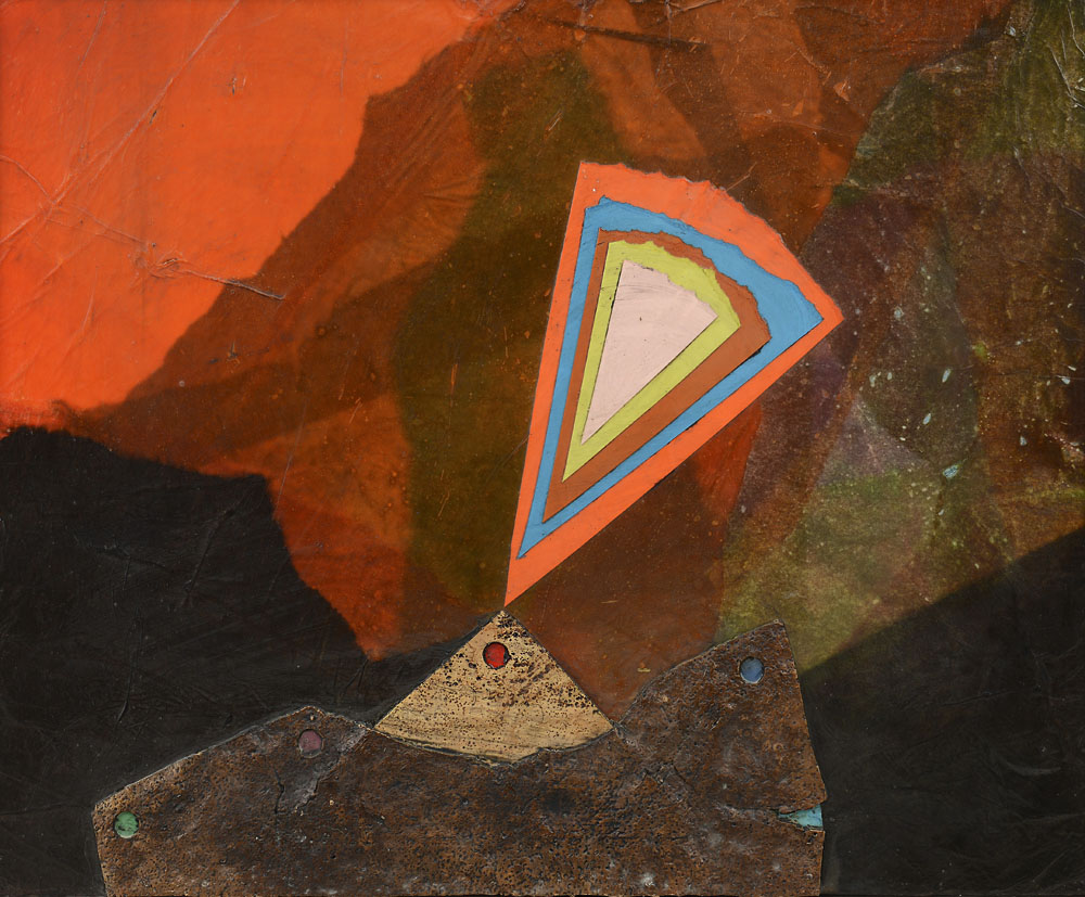 tecnica mista, collage e sughero su tavola cm. 73x92, firma, anno e numero di archivio al retro, dichiarazione d'autenticità del figlio Roberto Crippa Junior e numero di archivio su foto.