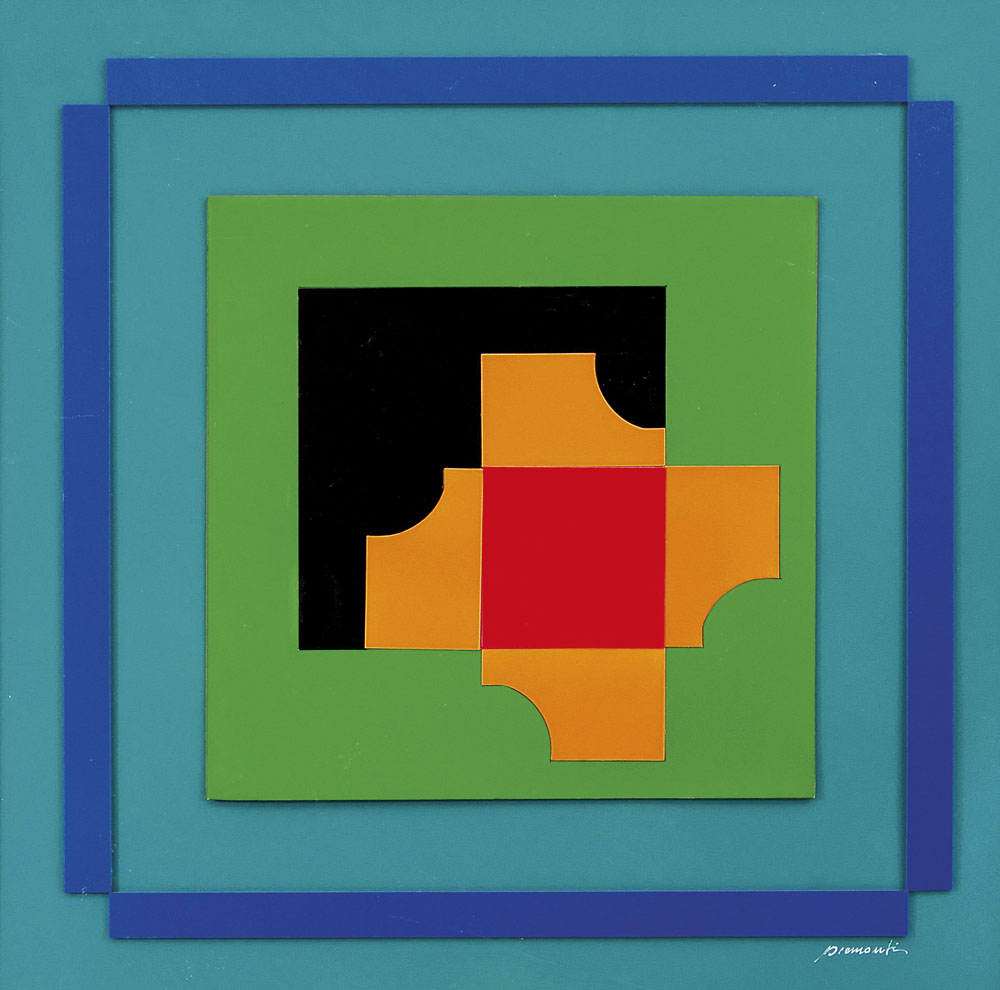 cartoncini colorati ad acrilico e fustellati cm. 70x70, firma in basso a destra, firma, titolo, anno, etichetta e timbri dell'artista al retro, dichiarazione d'autenticità e archivio dell'artista su foto.