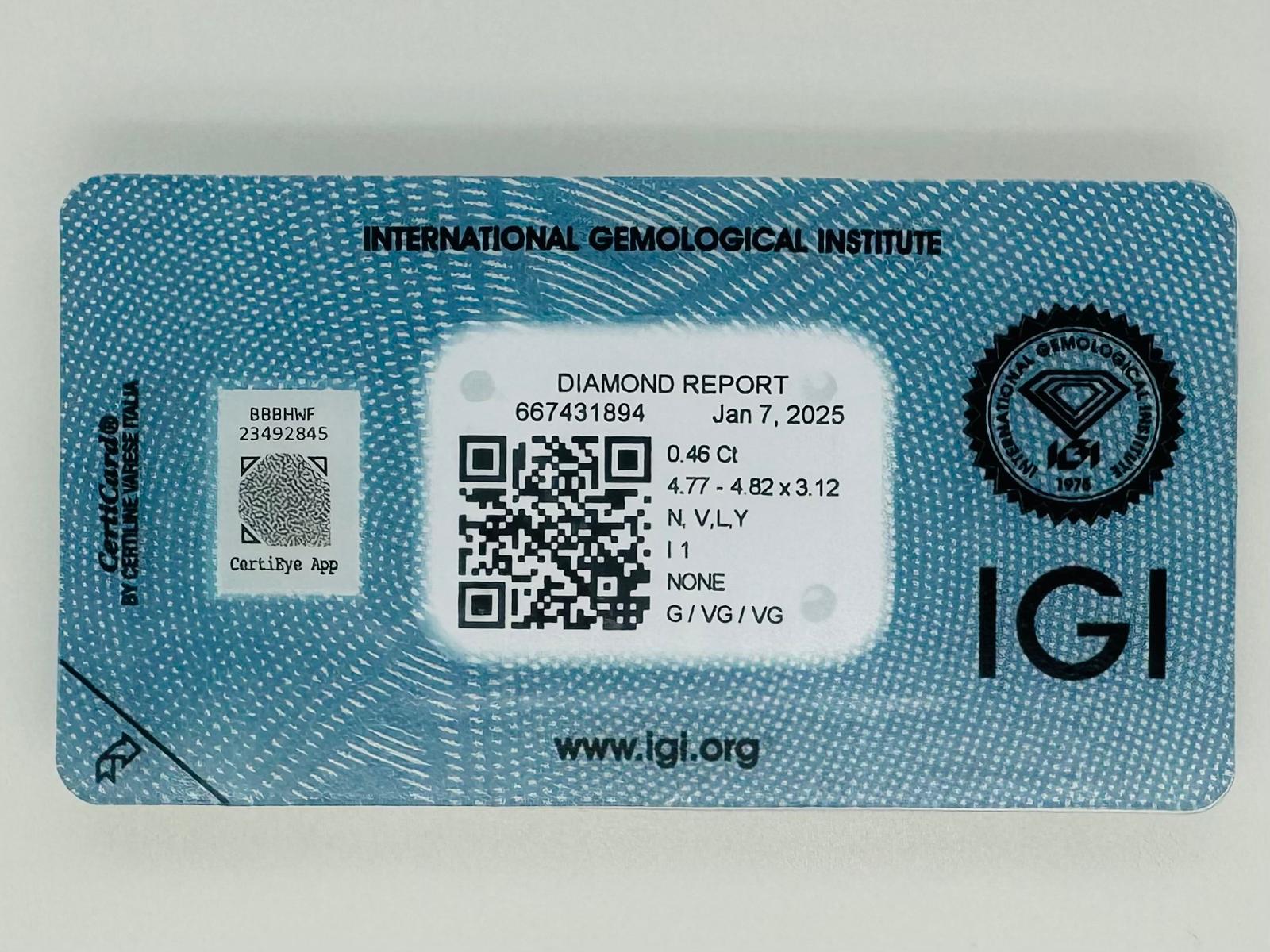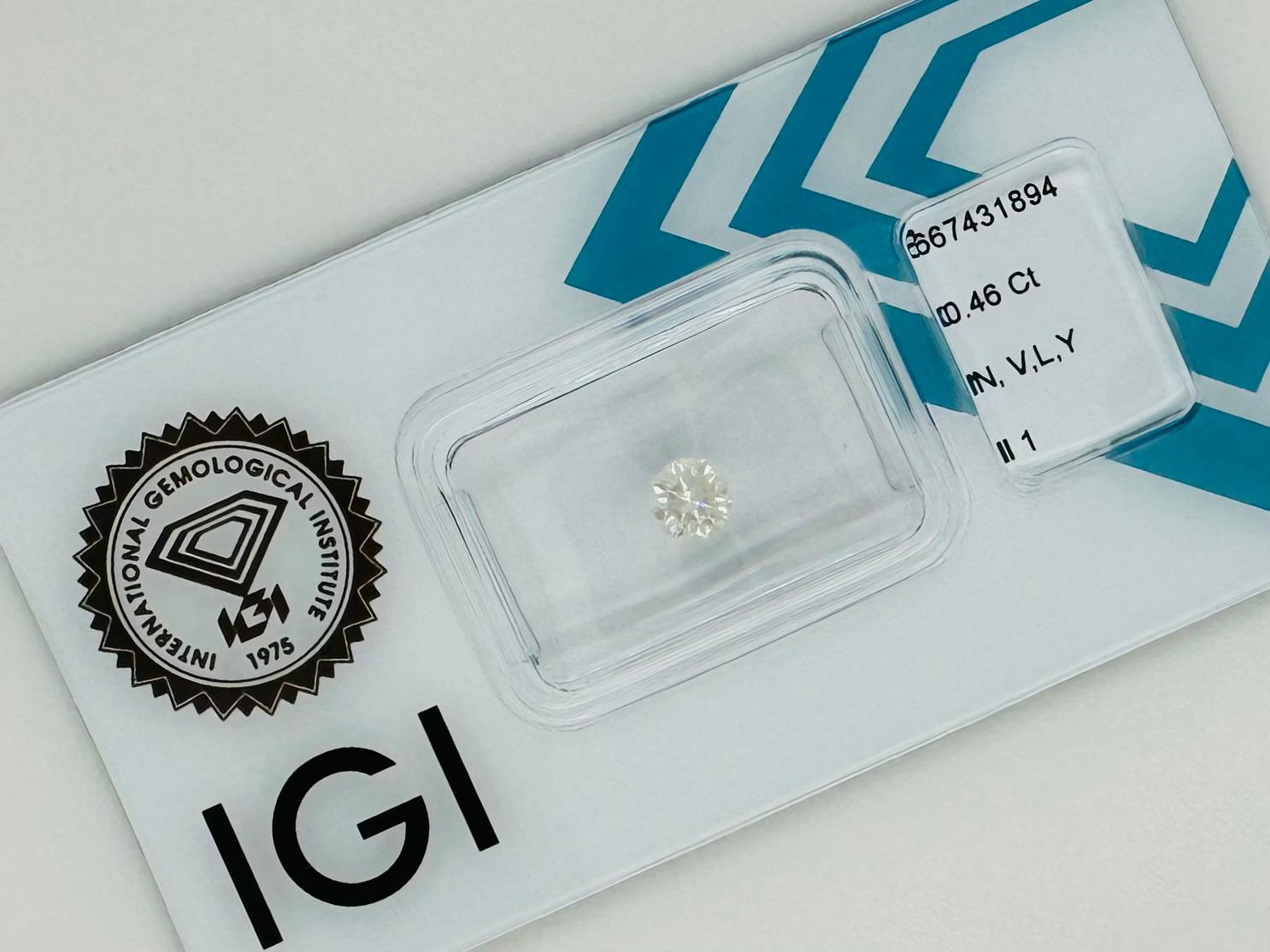 DIAMANTE NATURAL POLISHED 0,46 - COLORE GIALLO MOLTO CHIARO - PUREZZA I1 - CERTIFICATO IGI - C20805-8 - COMMISSIONE D’ASTA 25%