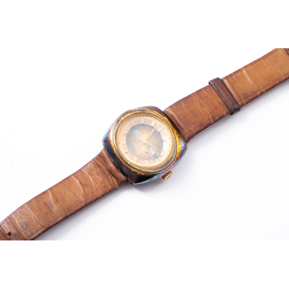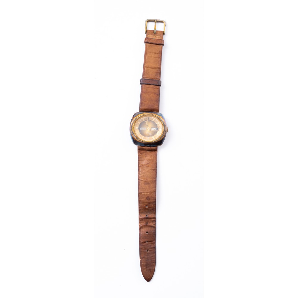 OROLOGIO da polso Enicar automatic con cassa in ottone, datario, cinturino in pelle (usure e da revisionare).