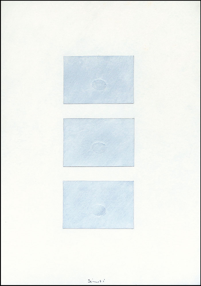 SIMETI TURI Alcamo 05/08/1929Tre ovali azzurri, anni'70calcografia e collage...