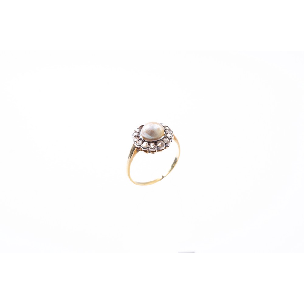 ANELLO in oro giallo 18 KT e argento con diamanti e perla