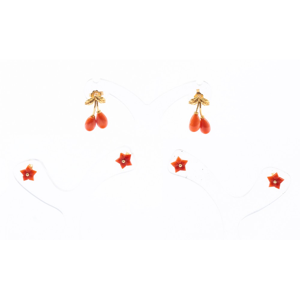 TRE COPPIE DI ORECCHINI in oro giallo 18 KT con corallo