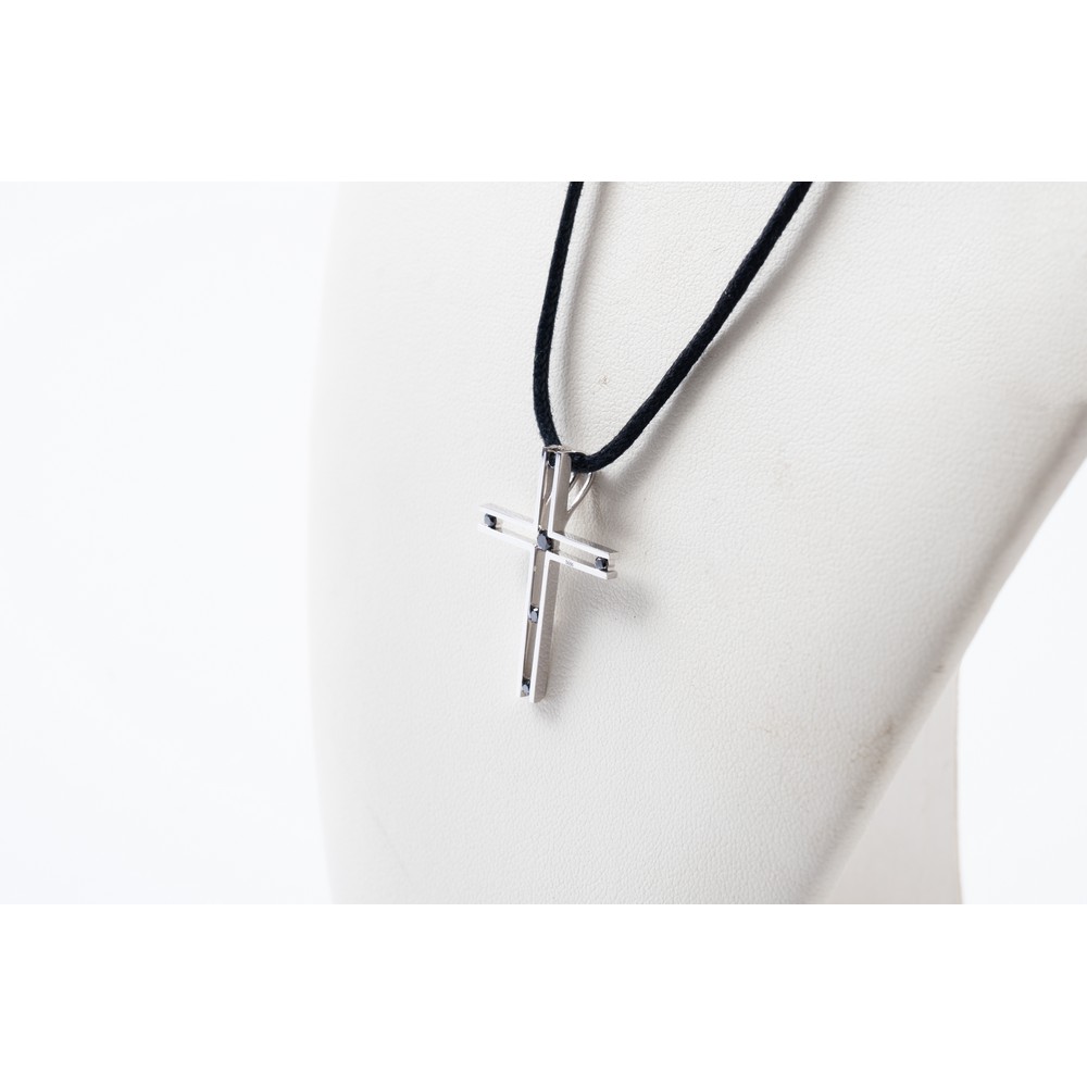 COLLANA Bliss in cordino con pendente in oro bianco 18 KT e diamanti black ct. 0,21 (g. 3,00).