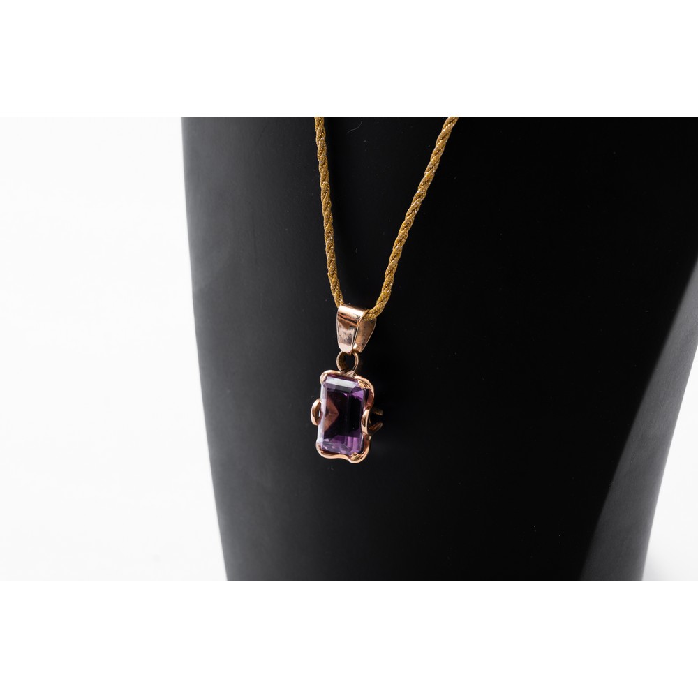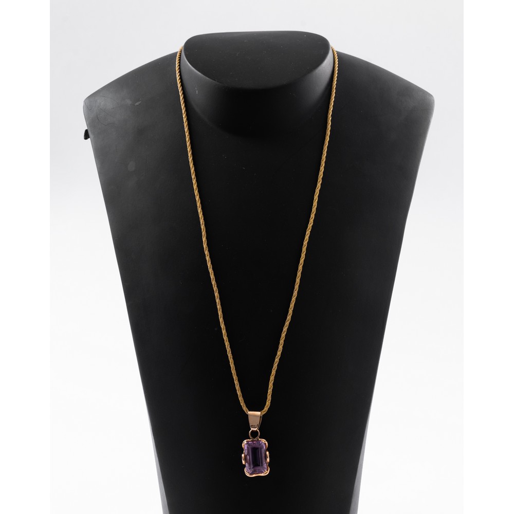 COLLANA in corda con pendente in oro giallo 18 KT e 9 KT con ametista, gancio in oro giallo 18 KT (g. 8,15).