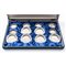 Sei sottotazze da tè in argento e sei sottotazze da caffè in argento con bordo sbalzato entro scatola (g. 319,00).