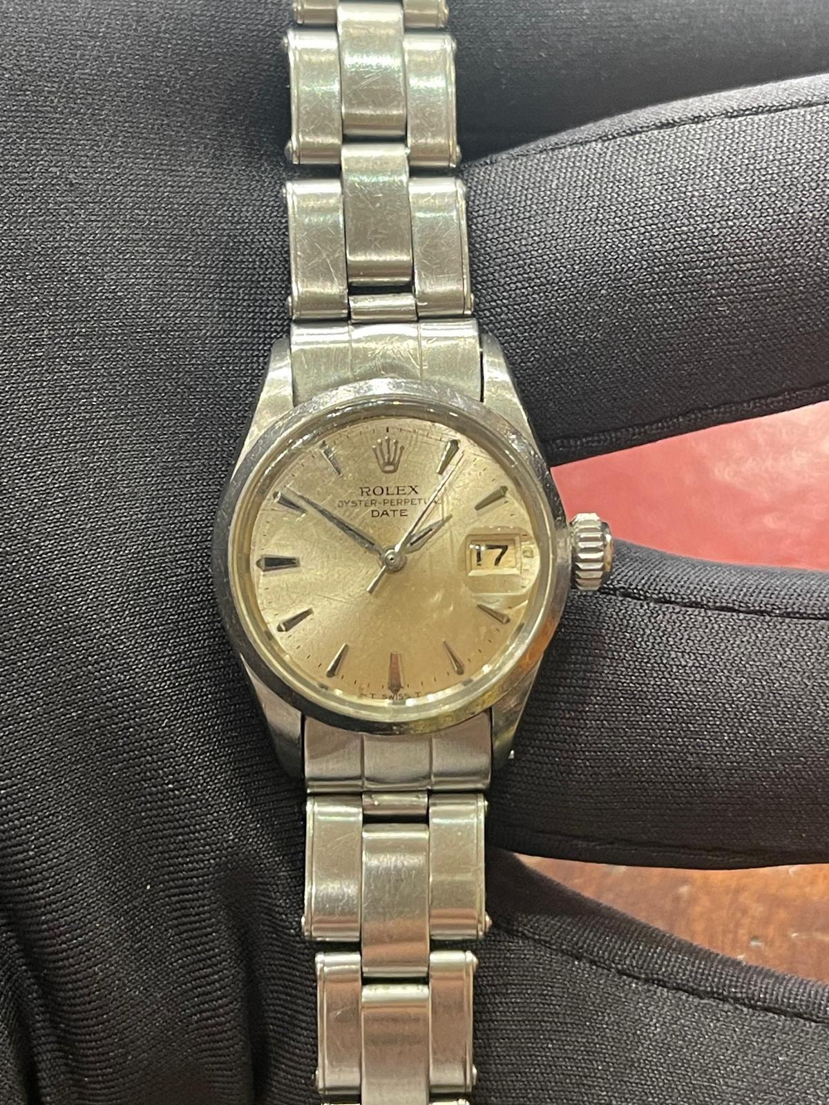 Marca Rolex Modello (Orologio) Oyster Perpetual Lady Date Numero di referenza 6516 (Oyster Perpetual Vintage) Carica Automatico Materiale cinturino Acciaio Condizione Usato (Soddisfacente) L'articolo presenta segni di usura marcati ed evidenti come graffi e ammaccature. Corredo Senza scatola originale né documenti originali Carica Automatico Cassa Diametro 26 mm Cinturino Materiale cinturino Acciaio Colore cinturino Acciaio - COMMISSIONE D’ASTA 25%