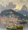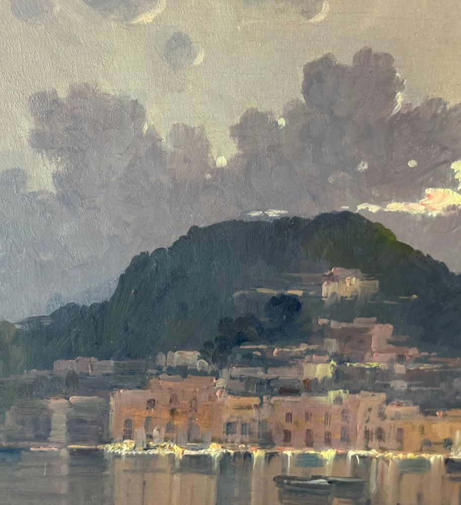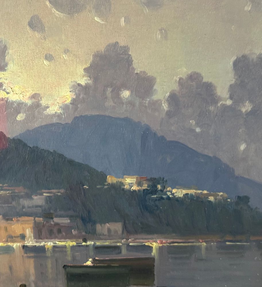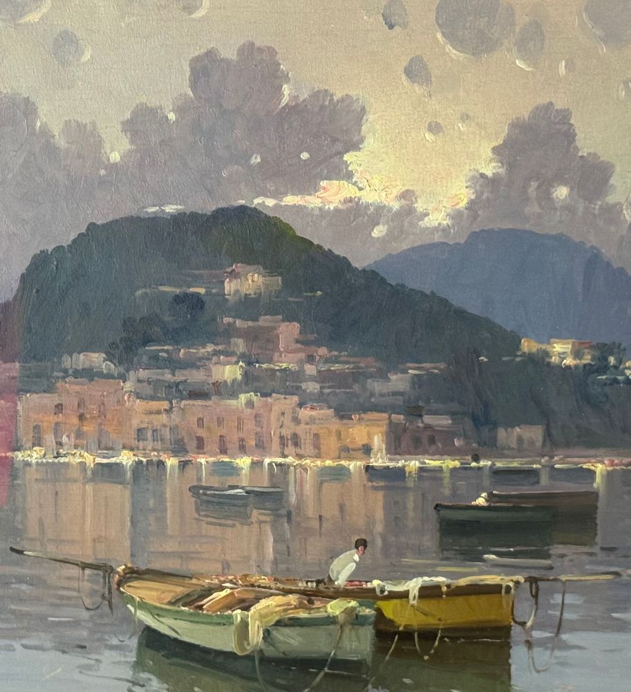 Dipinto olio su tavola, periodo XX secolo scuola italiana raffigurante Marina con barche. Dimensioni compreso cornice: 65x55 cm. Dimensioni interno cornice: 30x40 cm. Firmato in basso a destra Fortunato Fontana. Opera in buone condizioni.