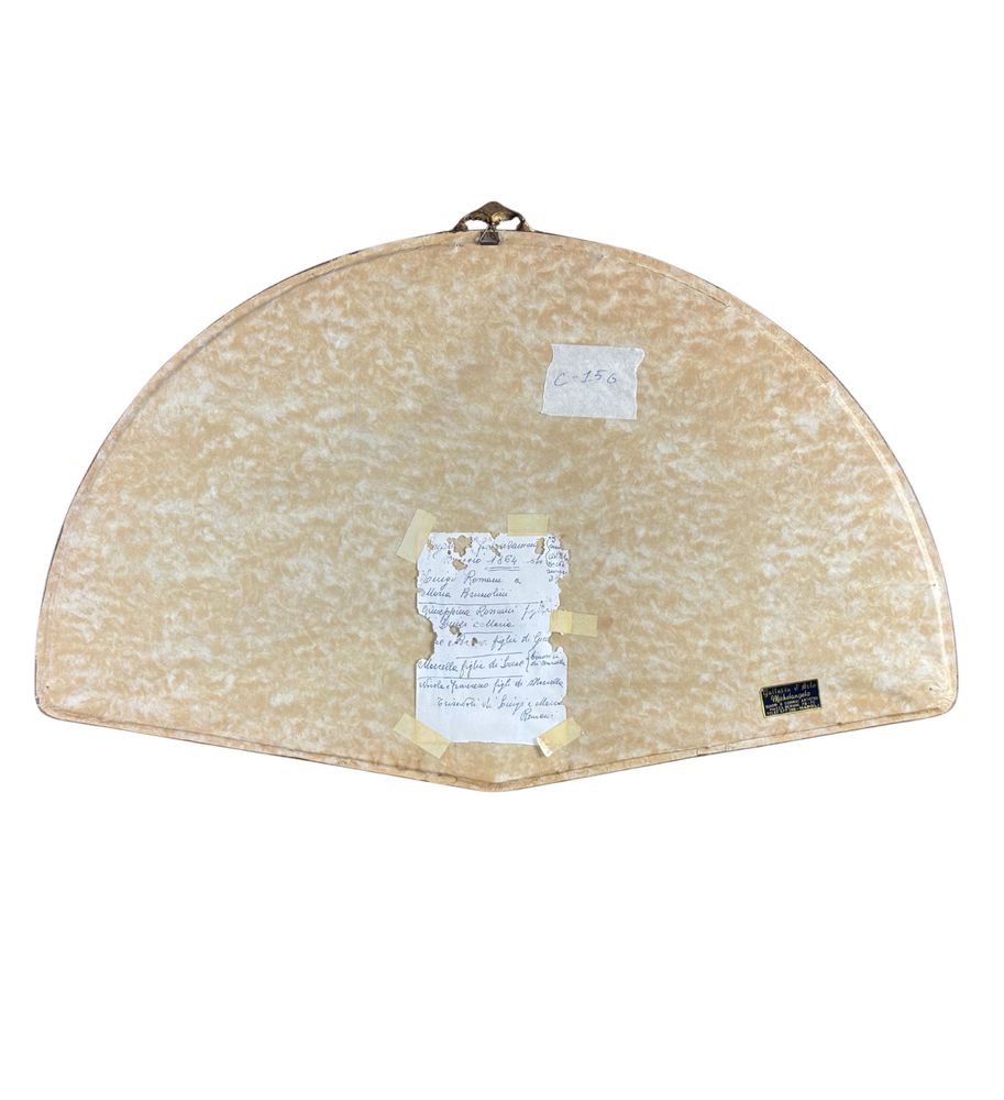 Ventaglio a figure neoclassiche in bacheca. Dimensioni compreso cornice: 62x42 cm. Opera in buone condizioni.