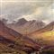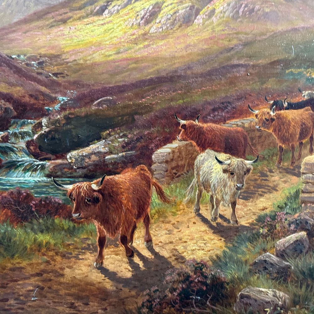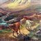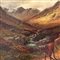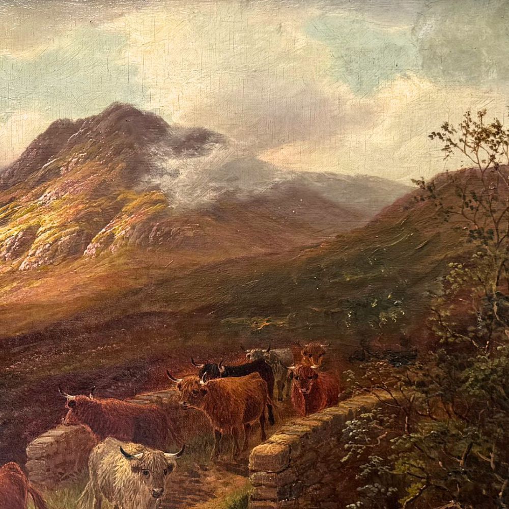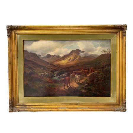 Dipinto olio su tela, periodo XIX secolo scuola Napoletana, raffigurante Paesaggio con gregge. Dimensioni interno cornice: 76x51 cm. Da artista anonimo. (Piccoli punti di restauro).