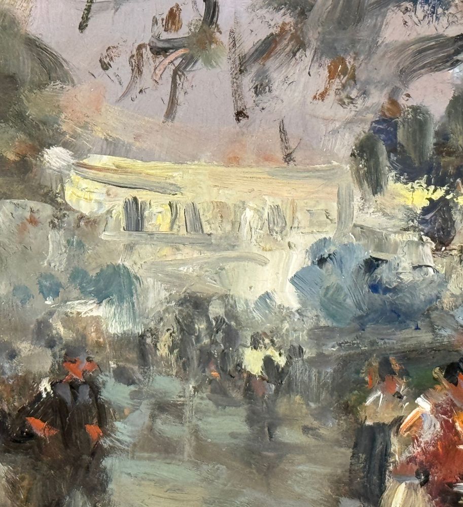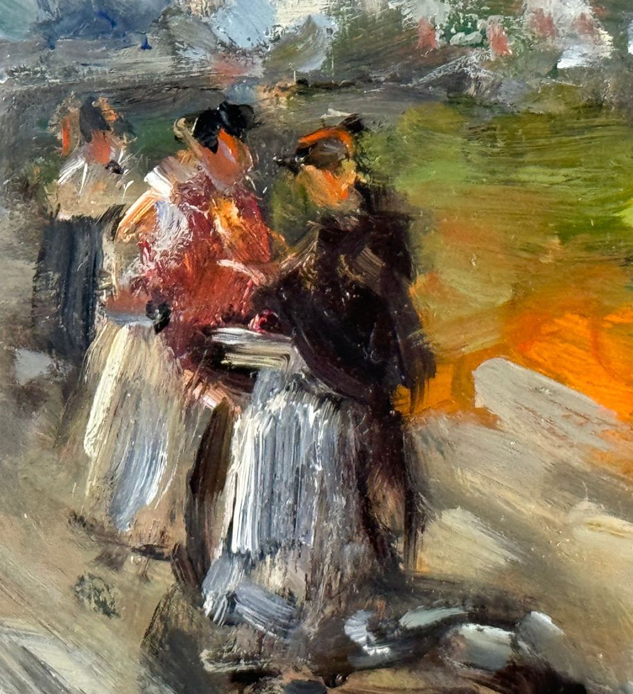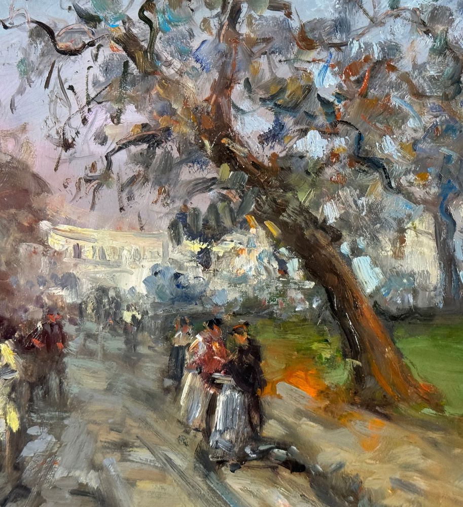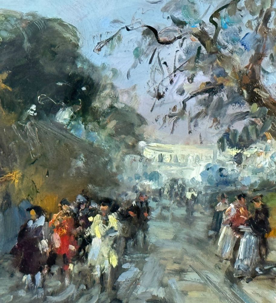Dipinto olio su tavola, periodo XX secolo scuola Italiana, raffigurante Strada con personaggi. Dimensioni compreso cornice: 54x44 cm. Dimensioni interno cornice: 35x25 cm. Reca firma in basso a sinistra Di Marino. Opera in ottime condizioni.