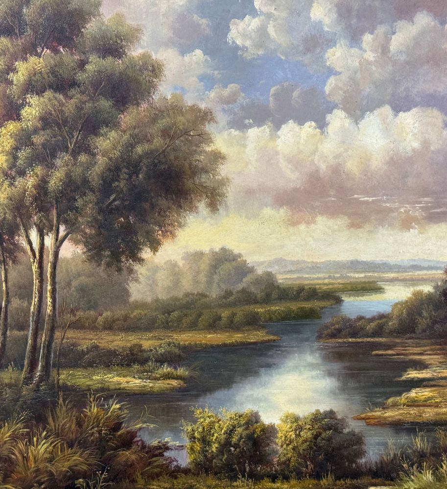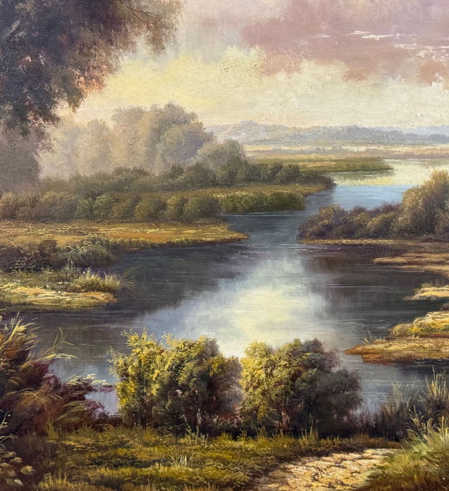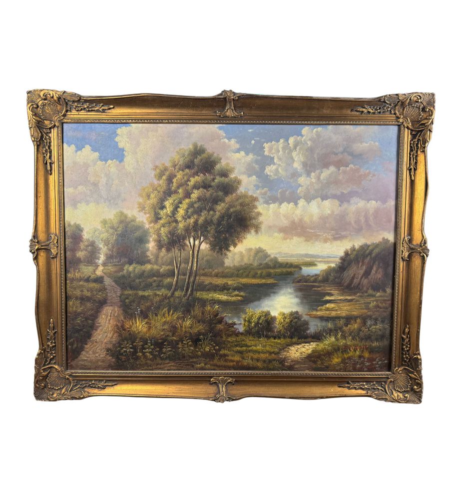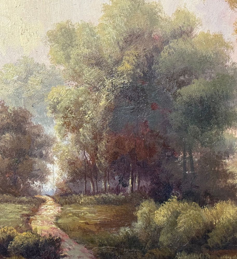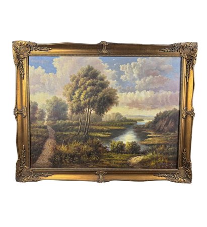 Dipinto olio su tela, periodo XX secolo scuola Italiana, raffigurante Paesaggio. Dimensioni compreso cornice: 108x138 cm. Dimensioni interno cornice: 90x120 cm. Reca firma in basso a destra da artista non identificato. Opera in buone condizioni.