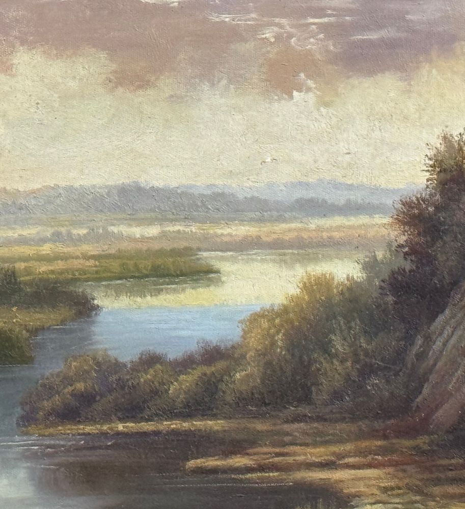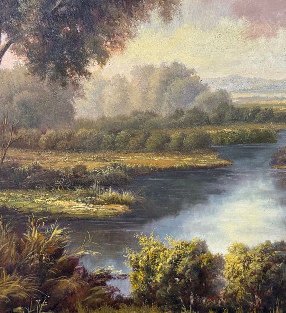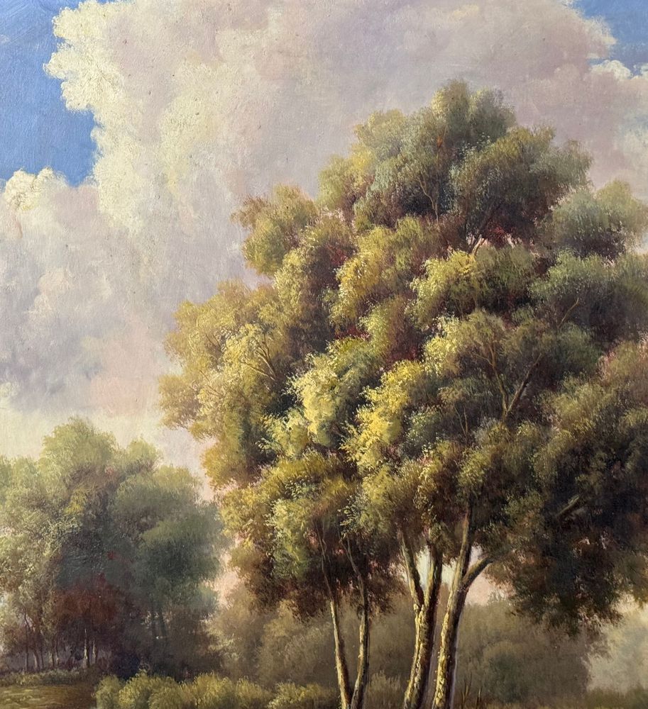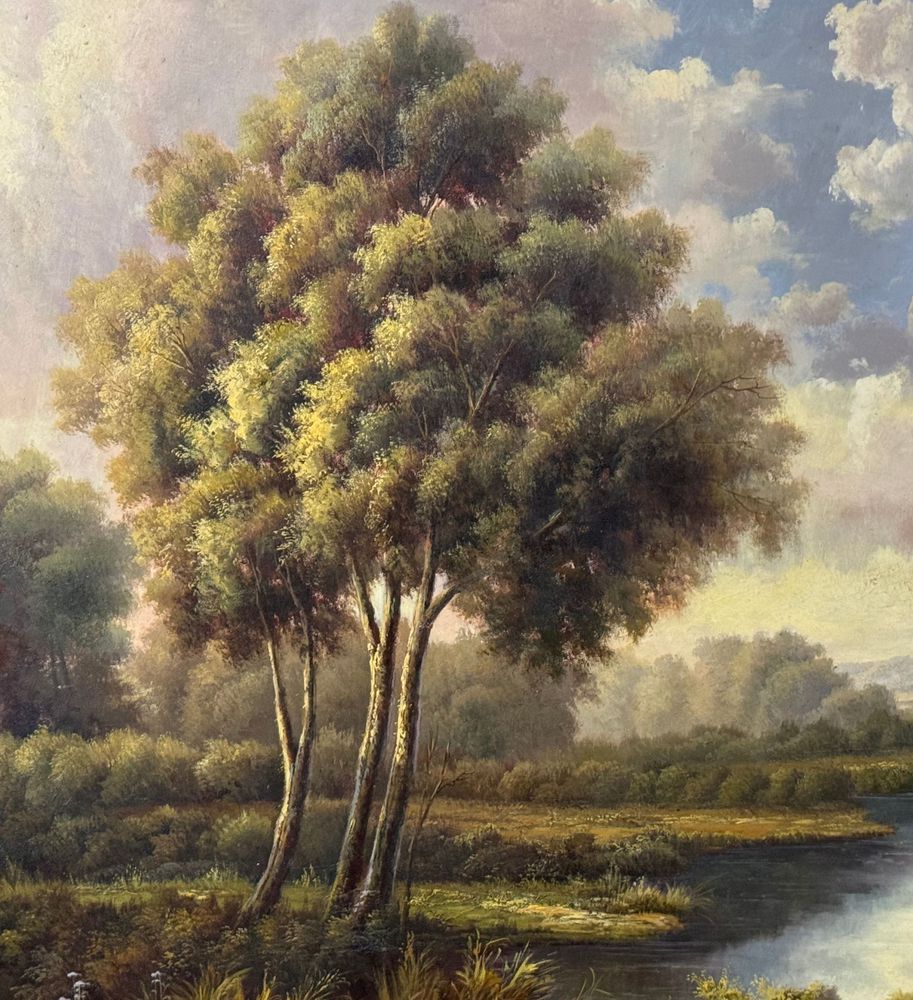 Dipinto olio su tela, periodo XX secolo scuola Italiana, raffigurante Paesaggio. Dimensioni compreso cornice: 108x138 cm. Dimensioni interno cornice: 90x120 cm. Reca firma in basso a destra da artista non identificato. Opera in buone condizioni.